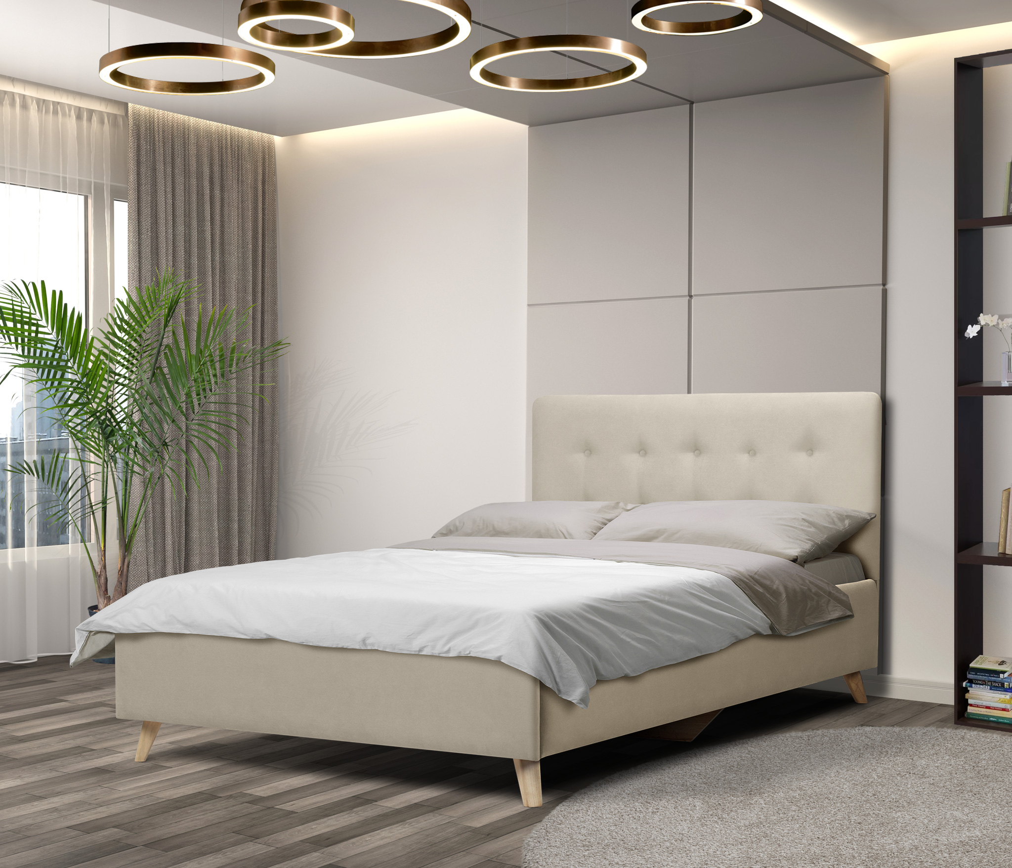 Мягкое изголовье создает дополнительный уют в интерьере.