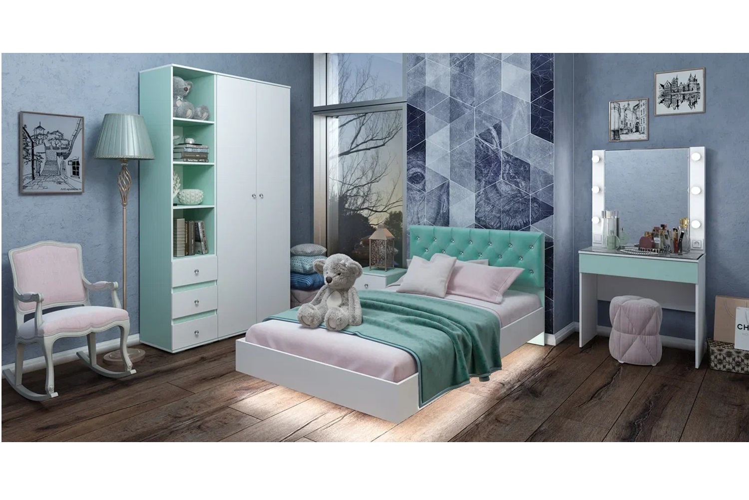 Шкаф имеет размеры 802 х 464 х 2176 мм и оснащён отделением со штангой и полками для хранения белья. Ручки выполнены в виде хрусталя, что придаёт изделию особый шарм. Благодаря своему цветовому решению, этот шкаф прекрасно впишется в светлый интерьер вашей комнаты.