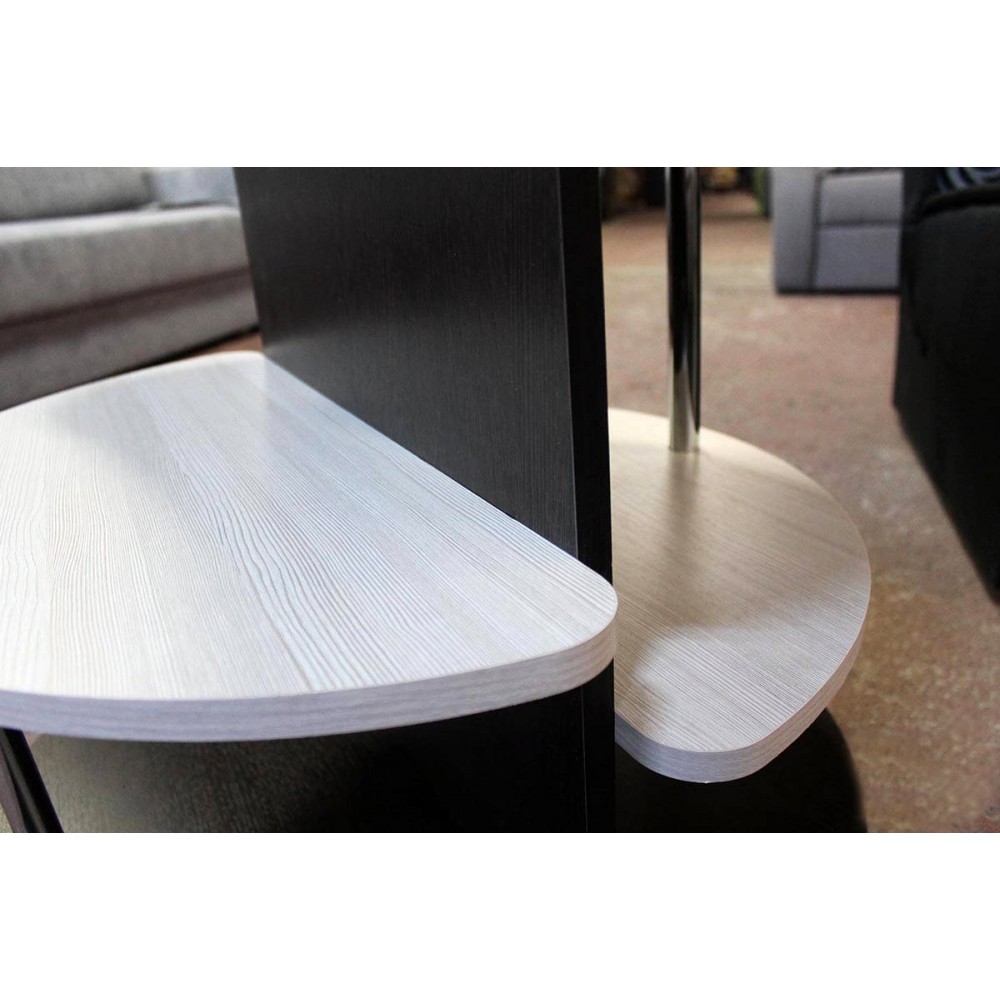 Стол журнальный Соренто в цветах венге и лоредо поражает своим оригинальным дизайном и высоким качеством исполнения. Этот компактный круглый столик гармонично дополнит интерьер современной квартиры. Его особенность — многоуровневая столешница толщиной 16 мм с ПВХ-кантом 2 мм, которая установлена на хромированных ножках. Это позволяет удобно разместить книги и журналы. Благодаря эргономичной форме и колёсам, эту модель также можно использовать в качестве сервировочного стола.