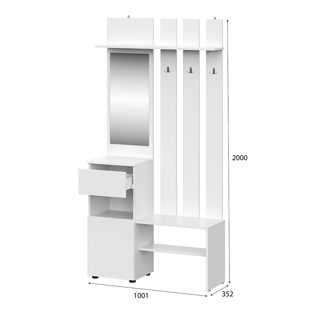 Благодаря универсальному дизайну и компактным размерам вешалка Токио впишется в малогабаритную прихожую или квартиру-студию. Наличие полок, надежные крючки и ниша под обувь позволят разместить верхнюю одежду, уличную и домашнюю обувь, сезонные аксессуары и головные уборы.