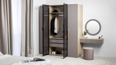 Шкаф-витрина для одежда из модульной линейки Амьен. Шкаф с 2-я распашными стеклянными дверцами.
