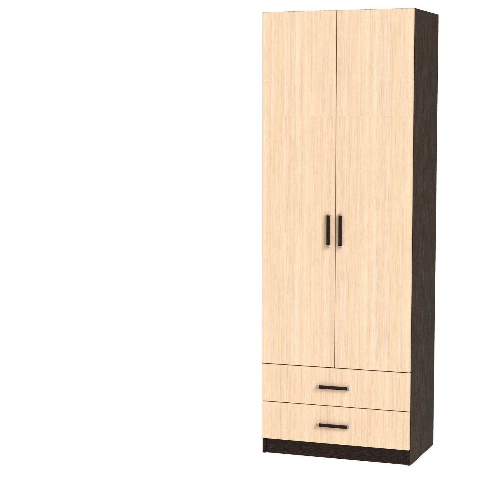 Феникс М-6 Корпус шкафа выполнен из Ламинированной ДСП высокого качества с насыщенным цветом. Шириною 80 см., эта многофункциональная модель несет в себе следующие элементы. За распашными дверьми штанга для одежды с одной стороны и стеллаж с полками с другой. Внизу расположены два выдвижных ящика.