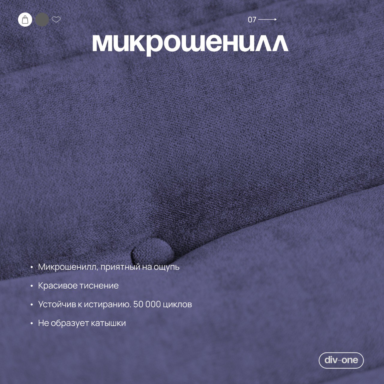 Мягкая обивка обеспечивает комфорт и удобство во время отдыха. Она выполнена из высококачественного Микрошенилла, который не только приятен на ощупь, но и легко чистится. Модуль имеет ортопедическую форму, которая поддерживает спину и обеспечивает комфорт во время отдыха.