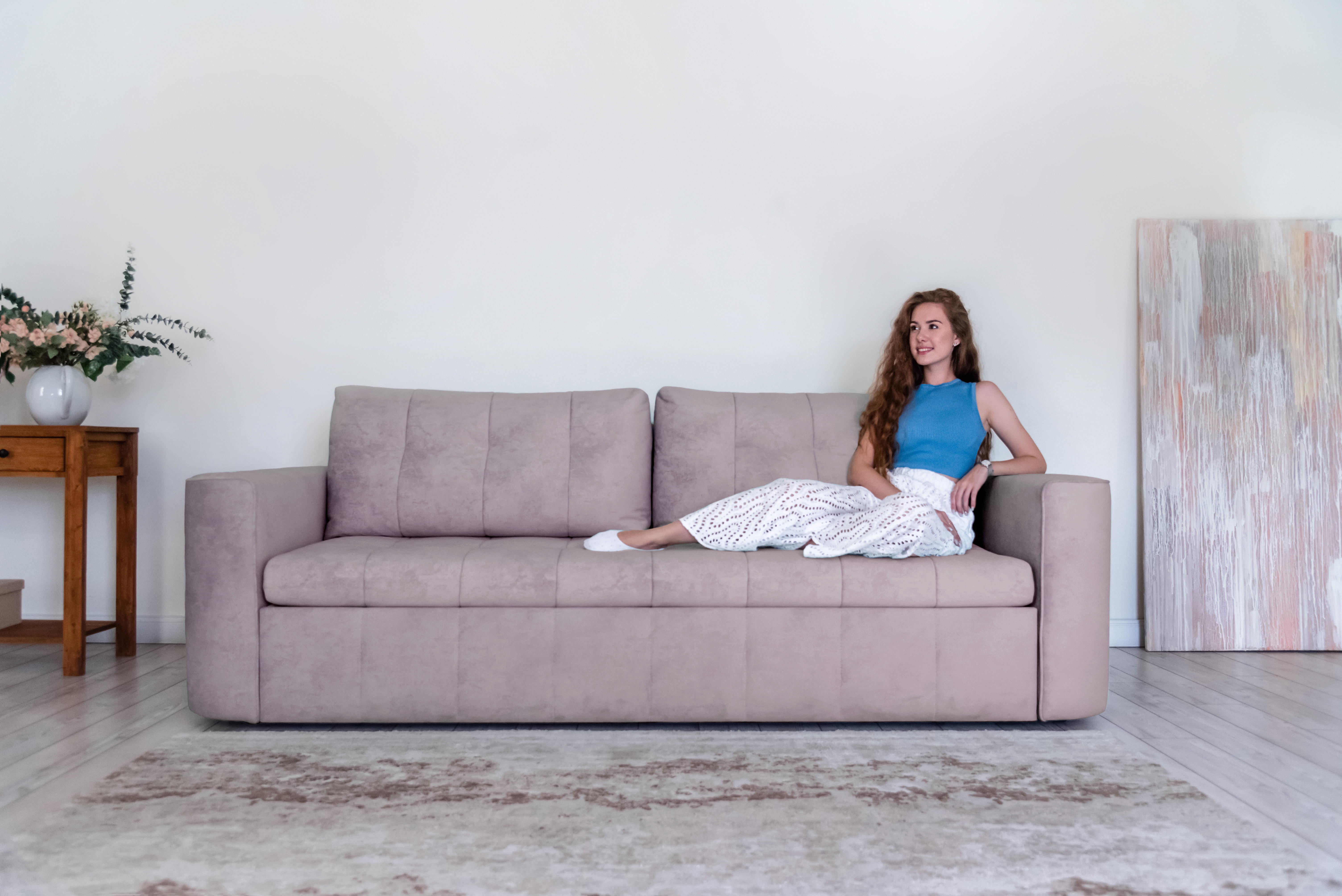 Стильный прямой диван BOSTON создан для тех, кому важна практичность и комфорт: надежный металлокаркас, мягкие ткани и быстрая трансформация в спальное место! Спинка защищает от соприкосновения со стеной во время сна.