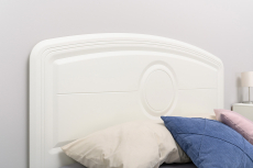 На спинке кровати присутствует декор в виде круга.