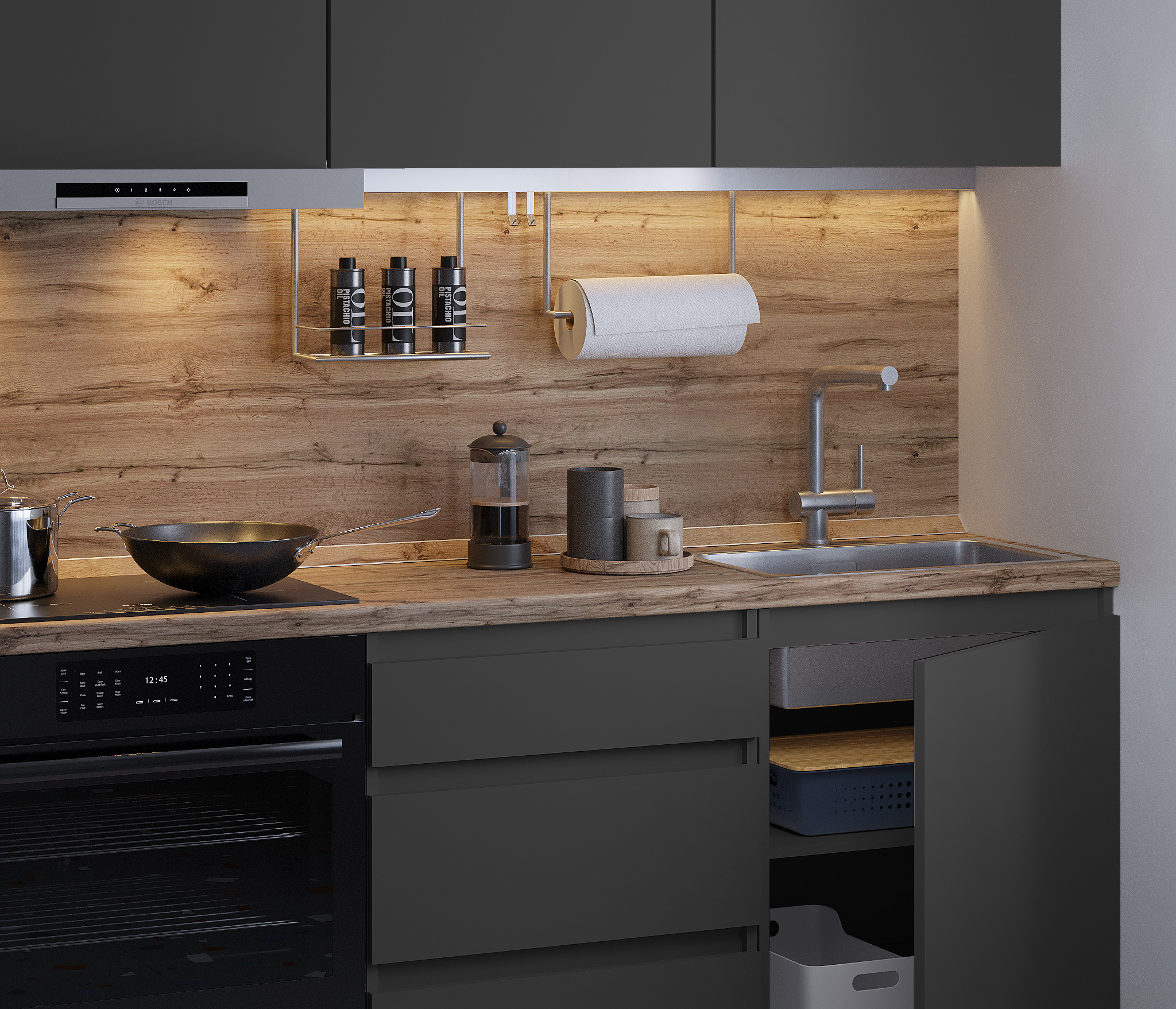 Обратите внимание, что столешница, стеновая панель, мойка и смеситель не входят в комплектацию кухни Леон и приобретаются отдельно. Это позволяет вам выбрать идеальные аксессуары и элементы для создания индивидуального дизайна вашей кухни.