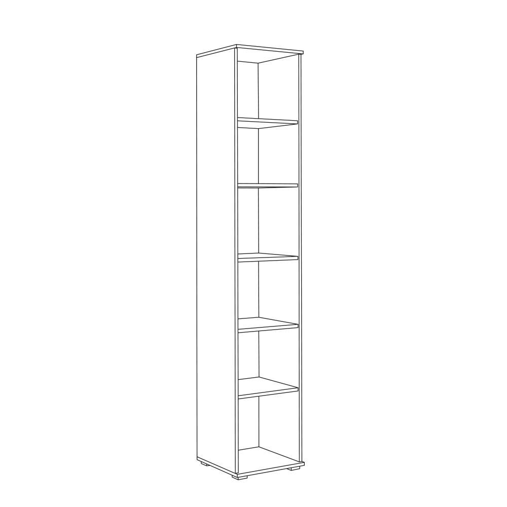 Конструкция с глухой распашной дверцей и 6 полками для хранения внутри.