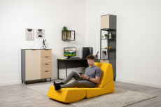 Детское кресло Марвэл привлекает уникальной формой. Модель можно использовать как в сложенном виде, так и в качестве комфортной лежанки-трансформера с подставкой для ног. Компактная конструкция подойдет даже для небольших пространств. Мягкая обивка легко чистится, а сам каркас удобно перемещать по комнате.
