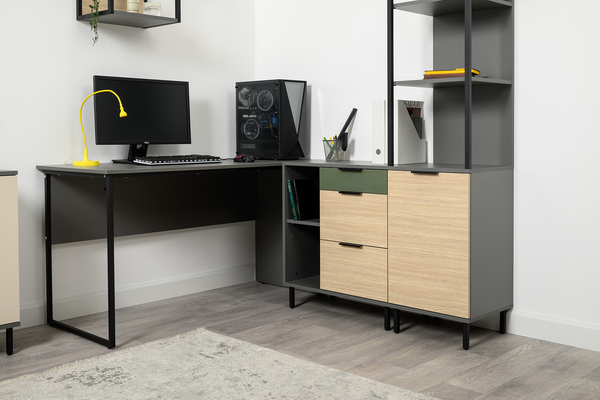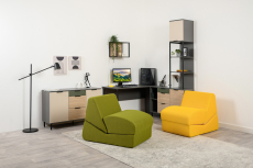 Столешница и одна из опор ЛДСП, каркас стола металлический. Изделие установлено на пластиковые регулируемые подпятники.