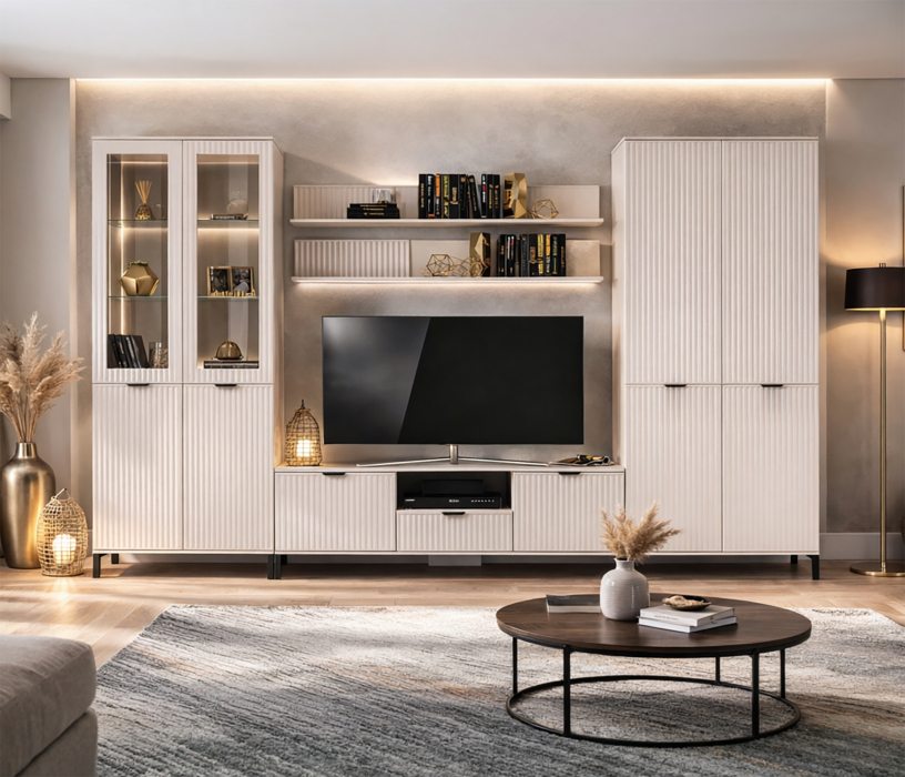 Отзывы о Столплит Набор для гостиной с двумя витринами Турин Кашемир серый/МДФ Кашемир
