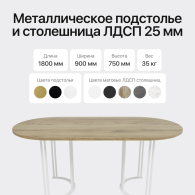 Стол овальный обеденный с белым металлическим подстольем VIOLUR 180 Код I0000425214
