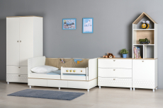 На фасадах скандинавские геометрические мотивы универсального цветового решения делают эту мебель подходящей и девочкам, и мальчикам.
