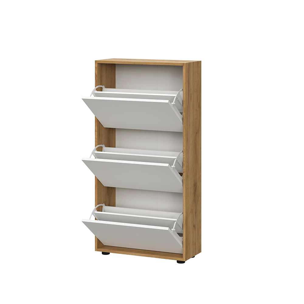 Каждый из трех ящиков обеспечит достаточно места для хранения различных моделей обуви – от кроссовок до туфель. Ящики легко открываются и закрываются, позволяя быстро находить нужную пару.