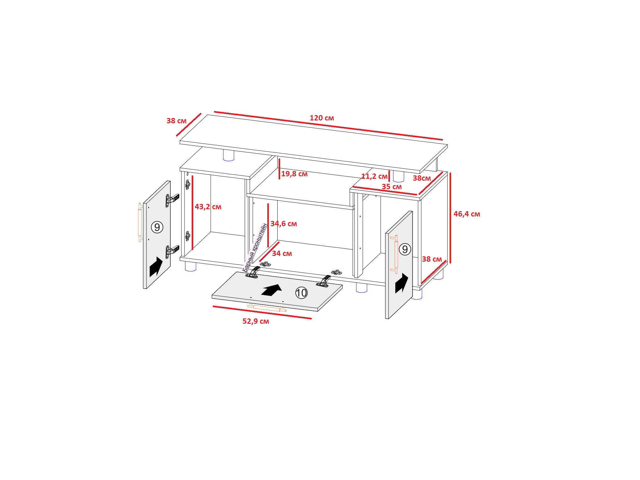 — Максимальная распределенная нагрузка на верхнюю крышку тумбы — не более 15 кг