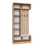 Модульная прихожая Руэлла отличается минималистичным дизайном и продуманным составом модулей. Мебель выполнена из ЛДСП в сочетании древесного декора и графита. Фасады открываются с помощью системы push-to-open - ручки отсутствуют.