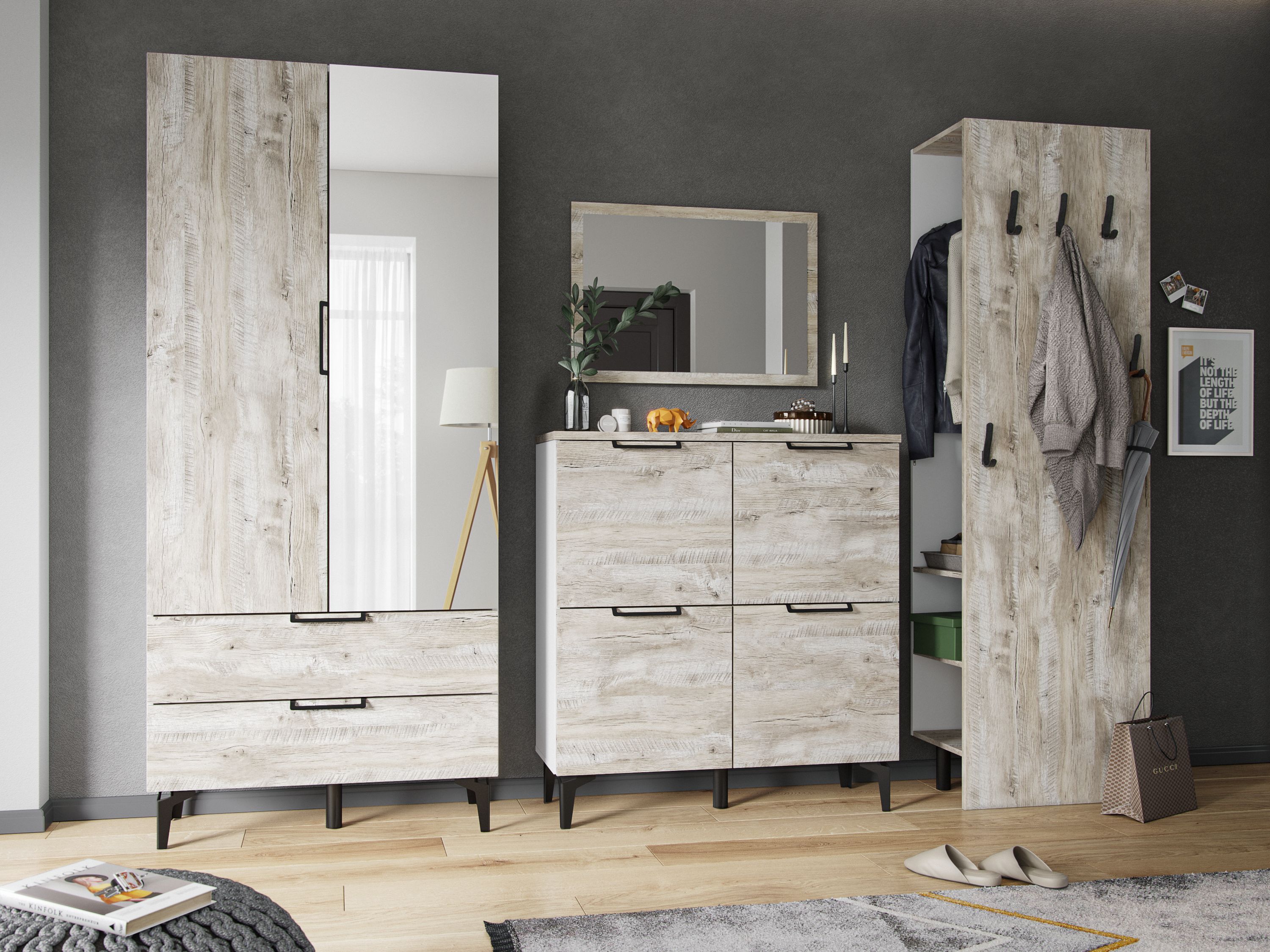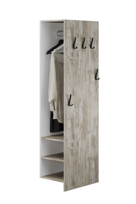 Мы знаем, что как сложно оформить хранение в малогабаритной прихожей. И как долго покупатели ищут ту самую мебель, которая позволит с комфортном разместить все вещи и при этом рационально использовать пространство. Чтобы решить эту задачу, обратите внимание на вешалку из коллекции Чикаго. Благодаря уникальной конструкции Вы расположите верхнюю одежду на плечиках, аксессуары и обувь на полках. 5 стильных, но надежных крючков подарят дополнительную возможность для того, чтобы повесить те элементы, которыми Вы пользуетесь чаще всего.