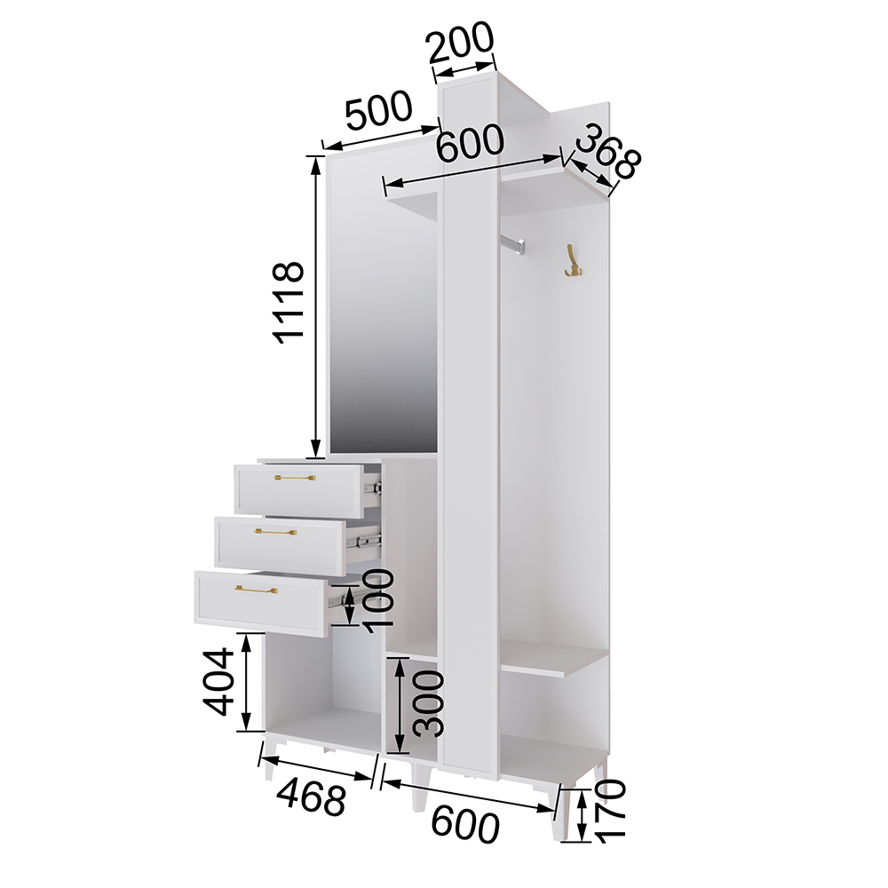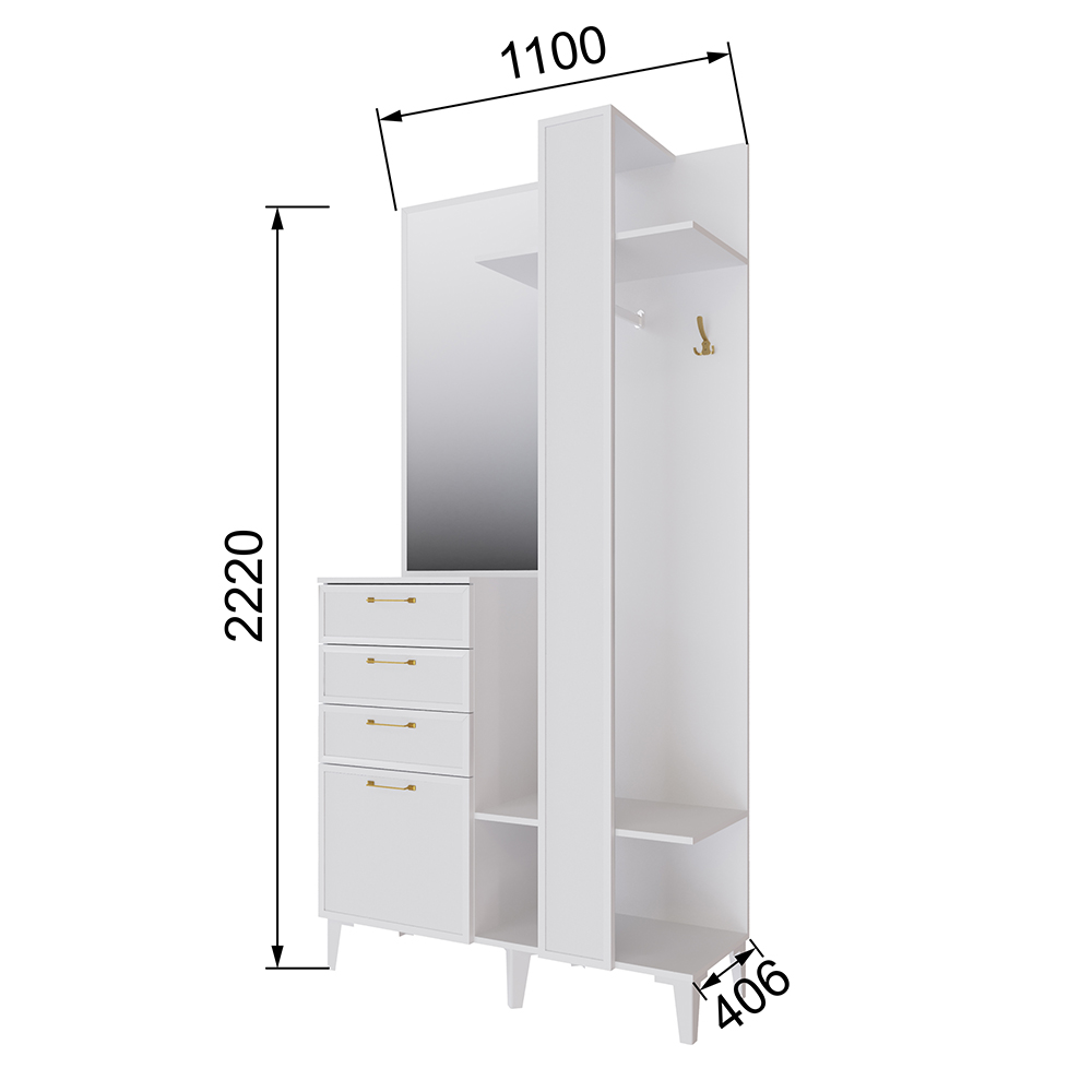 Благодаря стильному дизайну и компактным размерам секция Толедо ТЦС-30 впишется в малогабаритную прихожую или квартиру-студию. Наличие полок, ящиков, надежные крючки и ниша под обувь позволят разместить верхнюю одежду, уличную и домашнюю обувь, сезонные аксессуары и головные уборы.