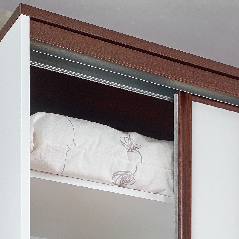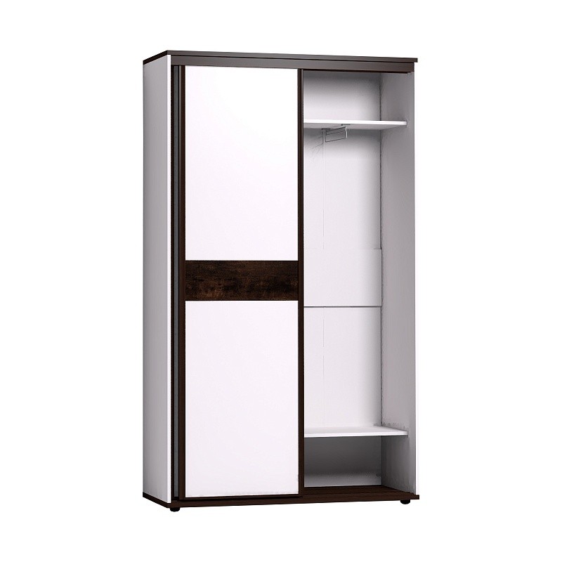 Если пространства в коридоре совсем немного, то оптимальный вариант для хранения – Норвуд 303 Шкаф-купе. Контрастный профиль НАЙДИ гармонирует с горизонтальными поверхностями 22 мм в декоре Орех Шоколадный и брашированной деревянной вставкой.