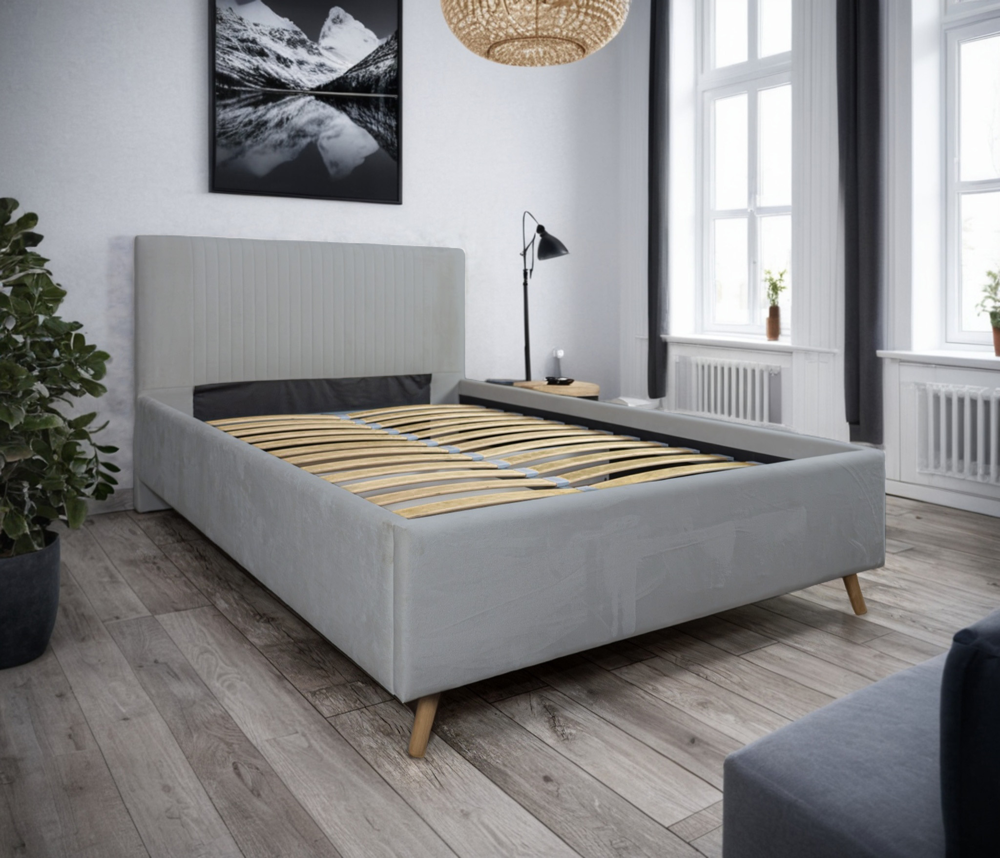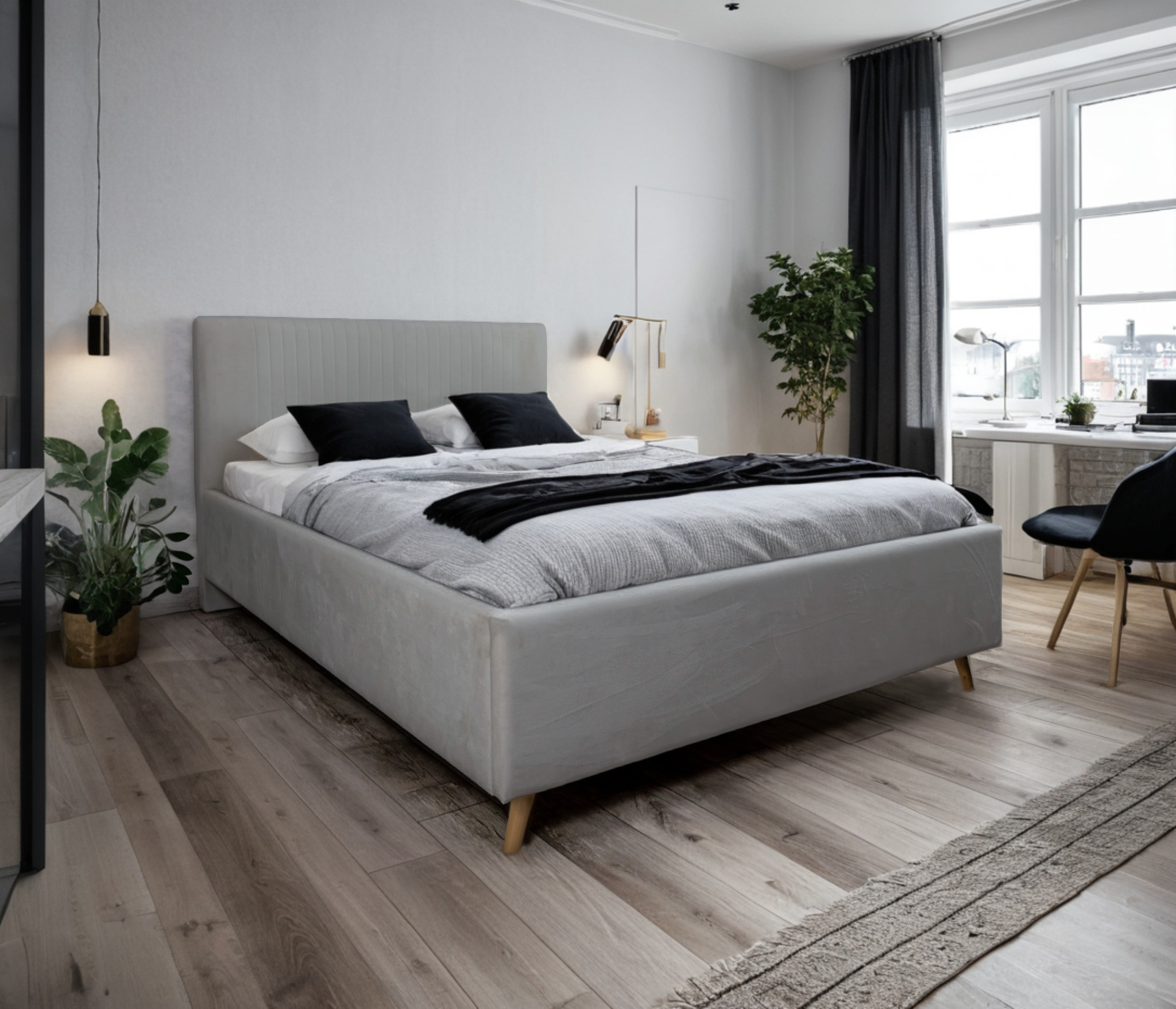Добротная стильная кровать, есть ящик для белья и подъемный механизм. Ножки достаточно высокие, чтобы проехал робот-пылесос