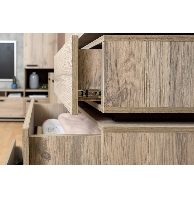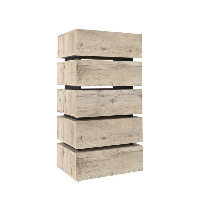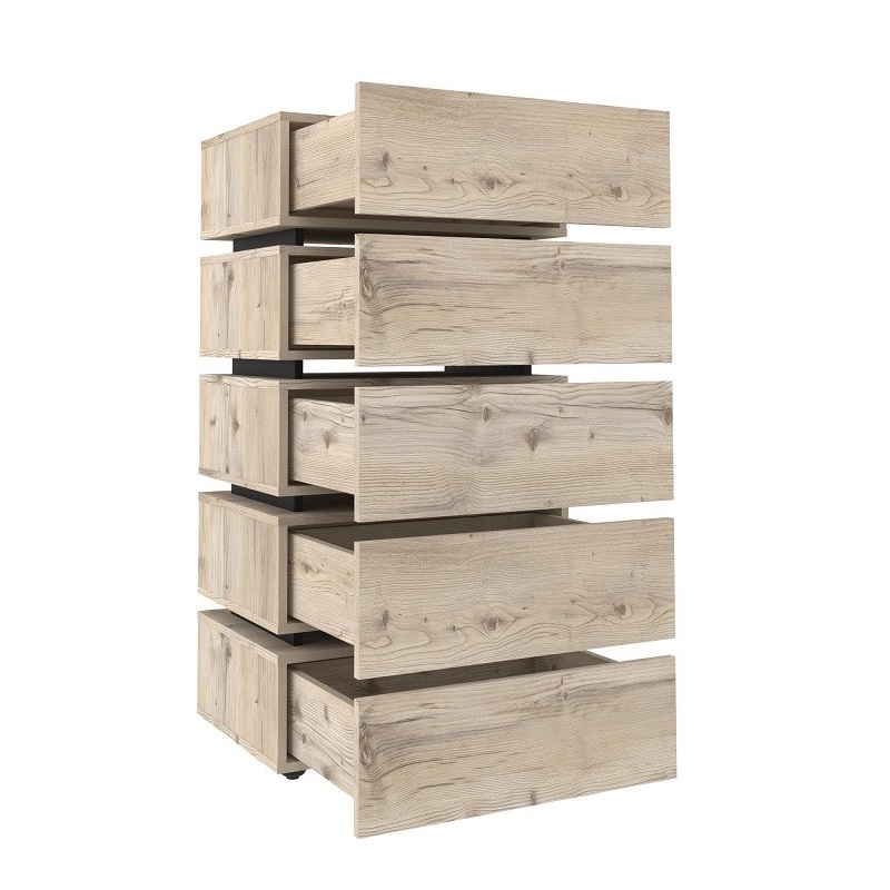 Для маленькой гостиной отлично подойдет высокий и узкий комод Nature 6. Стилевое решение комода делают его особенным, а гладкие фасады теплого оттенка дерева - сдержанным и одновременно очень уютным. Пять выдвижных ящиков глубиной 14 см способны вместить все необходимое, а компактная конструкция сэкономит место в комнате. Ящики легко открываются за свес благодаря направляющим полного выдвижения. Они быстро и легко устанавливаются при сборке комода. Регулируемые опоры компенсируют незначительные неровности пола.