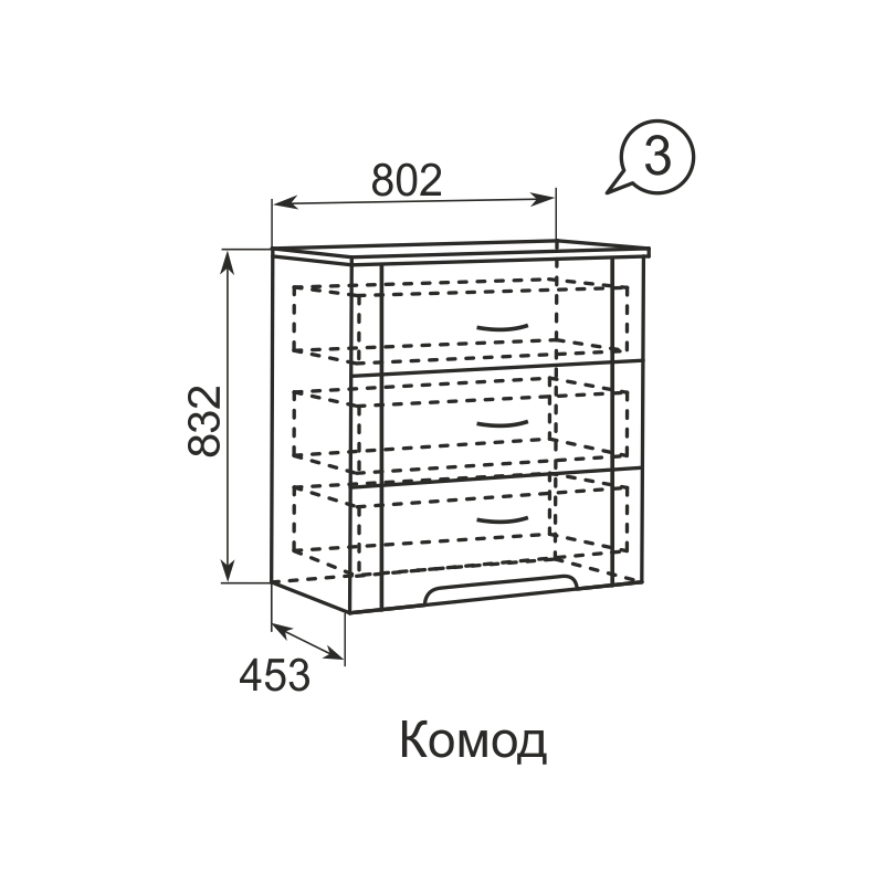 Ш 80 X В 83 X Г 45 см