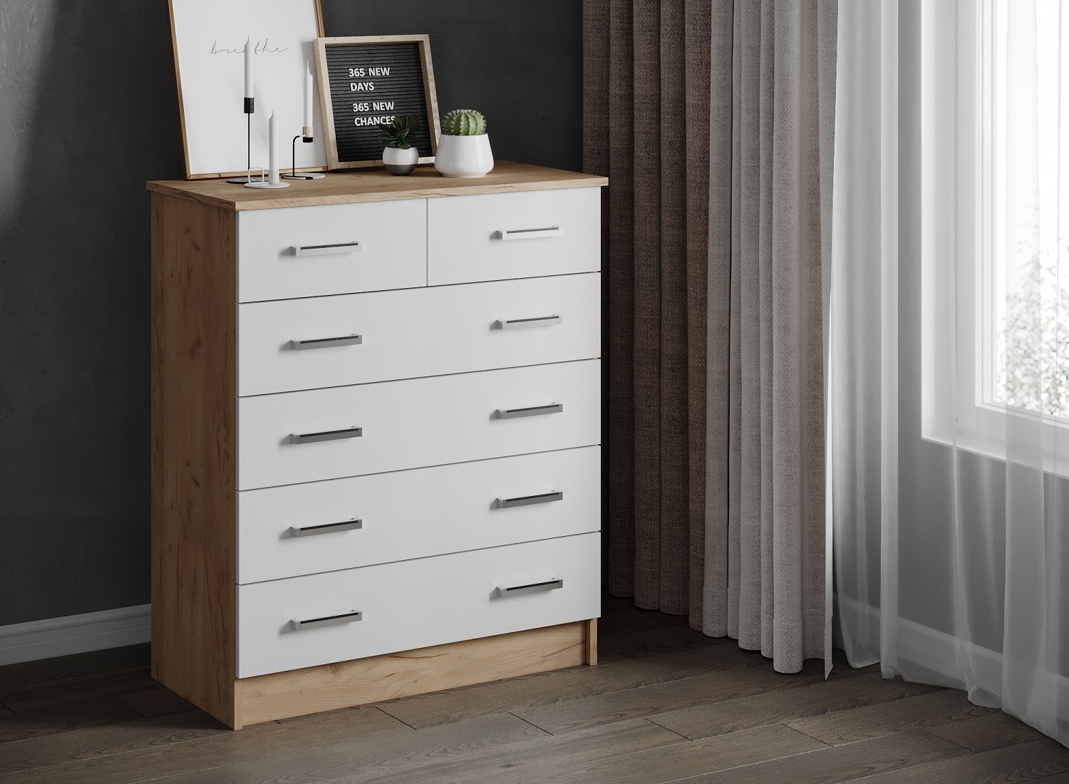 Отзывы о Столплит Комод большой Катрин 5 Дуб крафт/белый