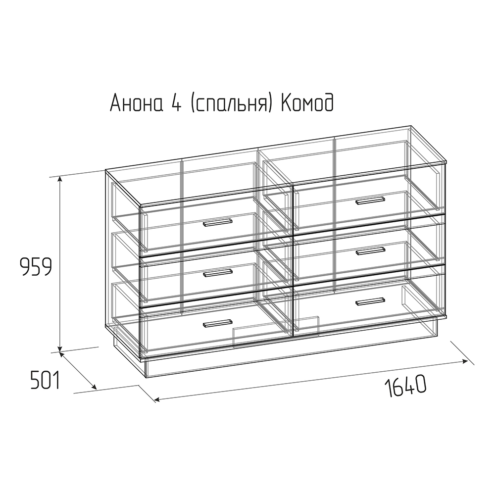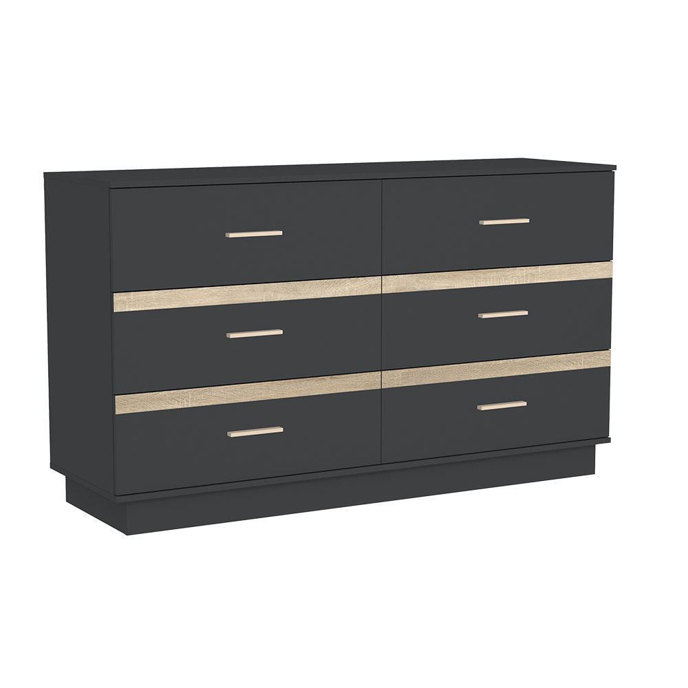 Вместительный комод с шестью ящиками из коллекции Анона поможет организовать место хранения в спальне, не загромождая пространство.