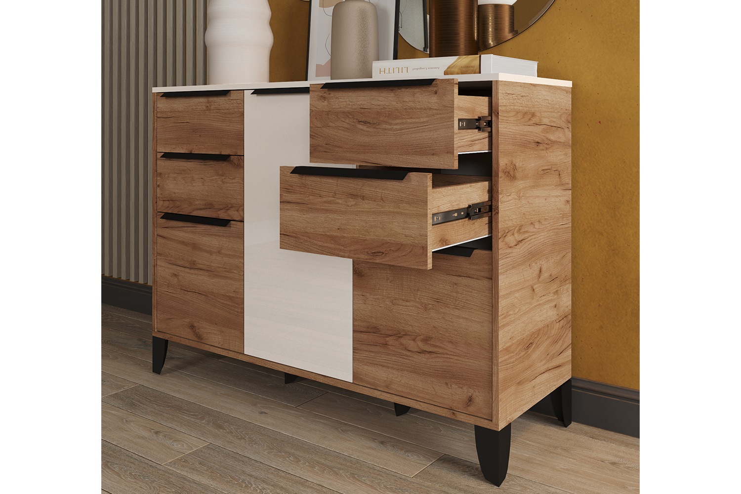 Комод Малави МК — отличный выбор для тех, кто ценит порядок и стиль в своём доме. Он поможет упорядочить пространство, а также добавит уют и гармонию в интерьер Вашей комнаты. Ящики комода оснащены направляющими полного выдвижения с шариковым механизмом, обеспечивающим плавное и легкое открывание.