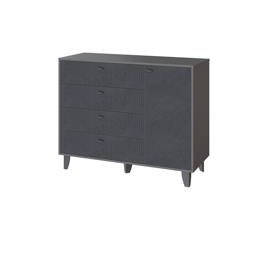 Комод Катрин-13 — это стильный и функциональный элемент интерьера, который станет отличным дополнением к вашей спальне или гостиной. Он выполнен в современном стиле и имеет комбинированную конструкцию, четыре выдвижных ящика и полки за распашными фасадами.