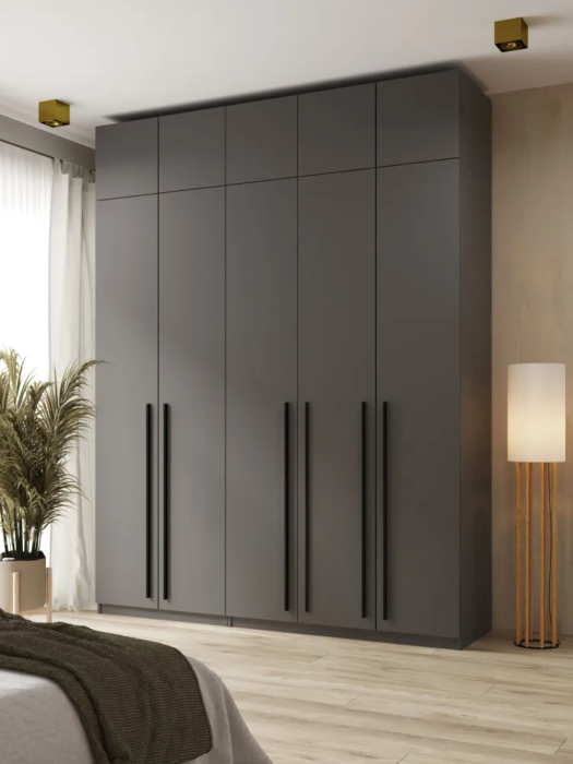 Шкаф для одежды распашной с ящиками — идеальное решение для организации пространства в вашем доме. Эта модель с пятью дверями и антресолью сочетает в себе стильный дизайн и максимальную функциональность.