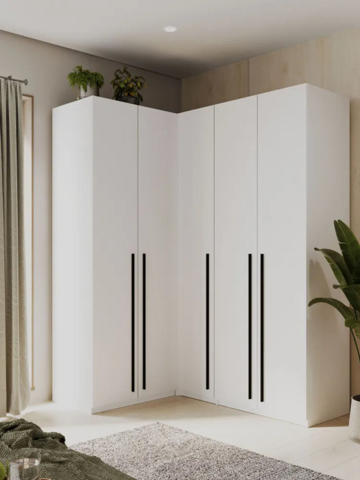 Представляем угловой шкаф для одежды распашной с ящиками, идеально подходящий для современного интерьера. Этот стильный шкаф станет не только функциональным, но и эстетичным дополнением вашей комнаты, благодаря своему изящному дизайну. Он прекрасно впишется в прихожую, спальню, детскую или гостиную, обеспечивая достаточное пространство для хранения одежды.