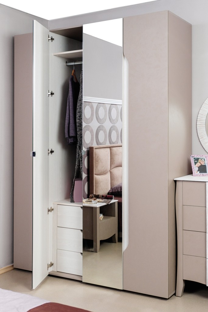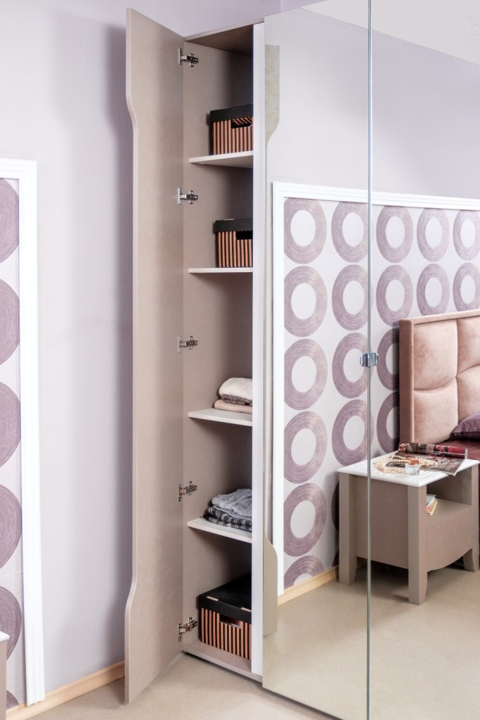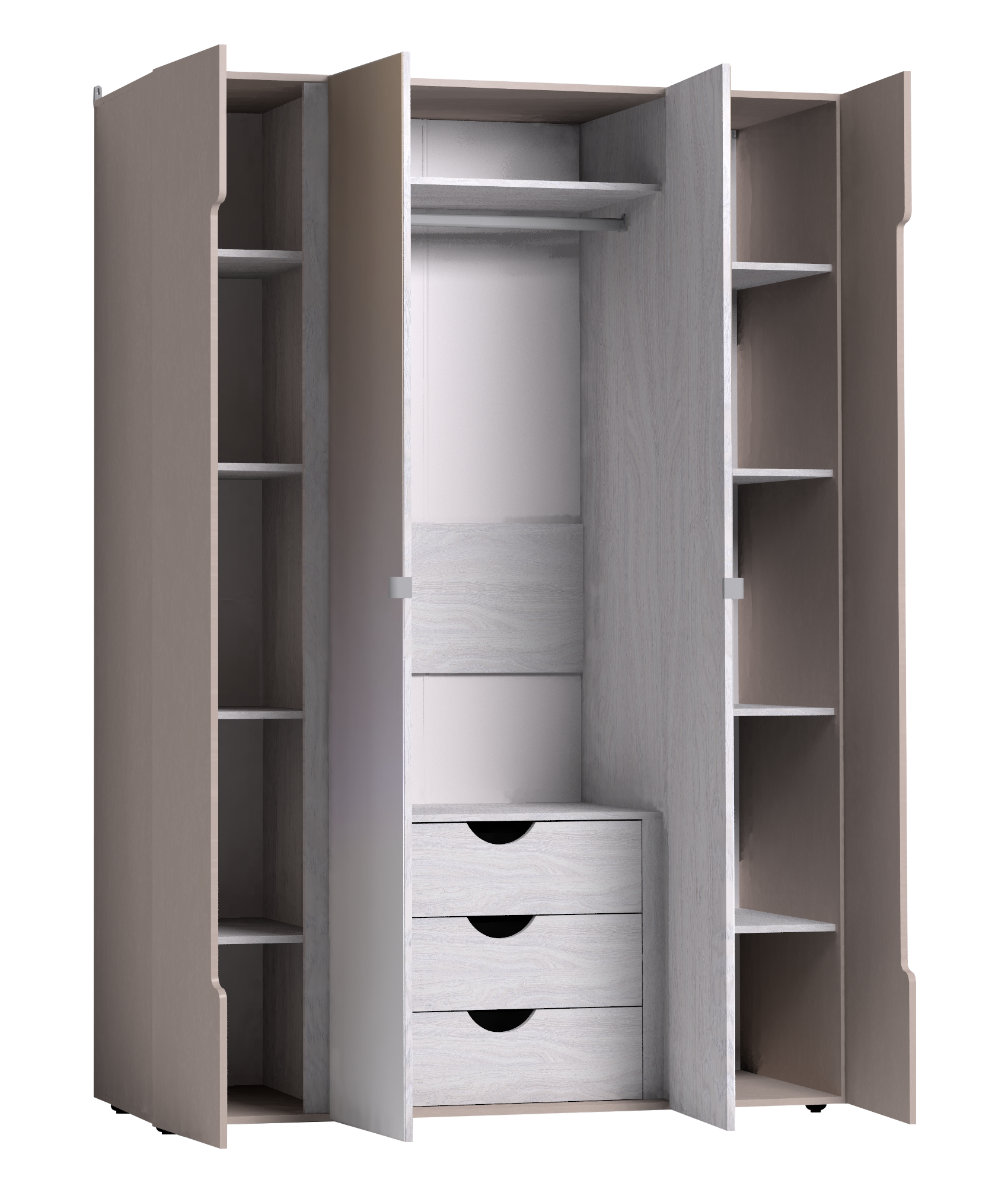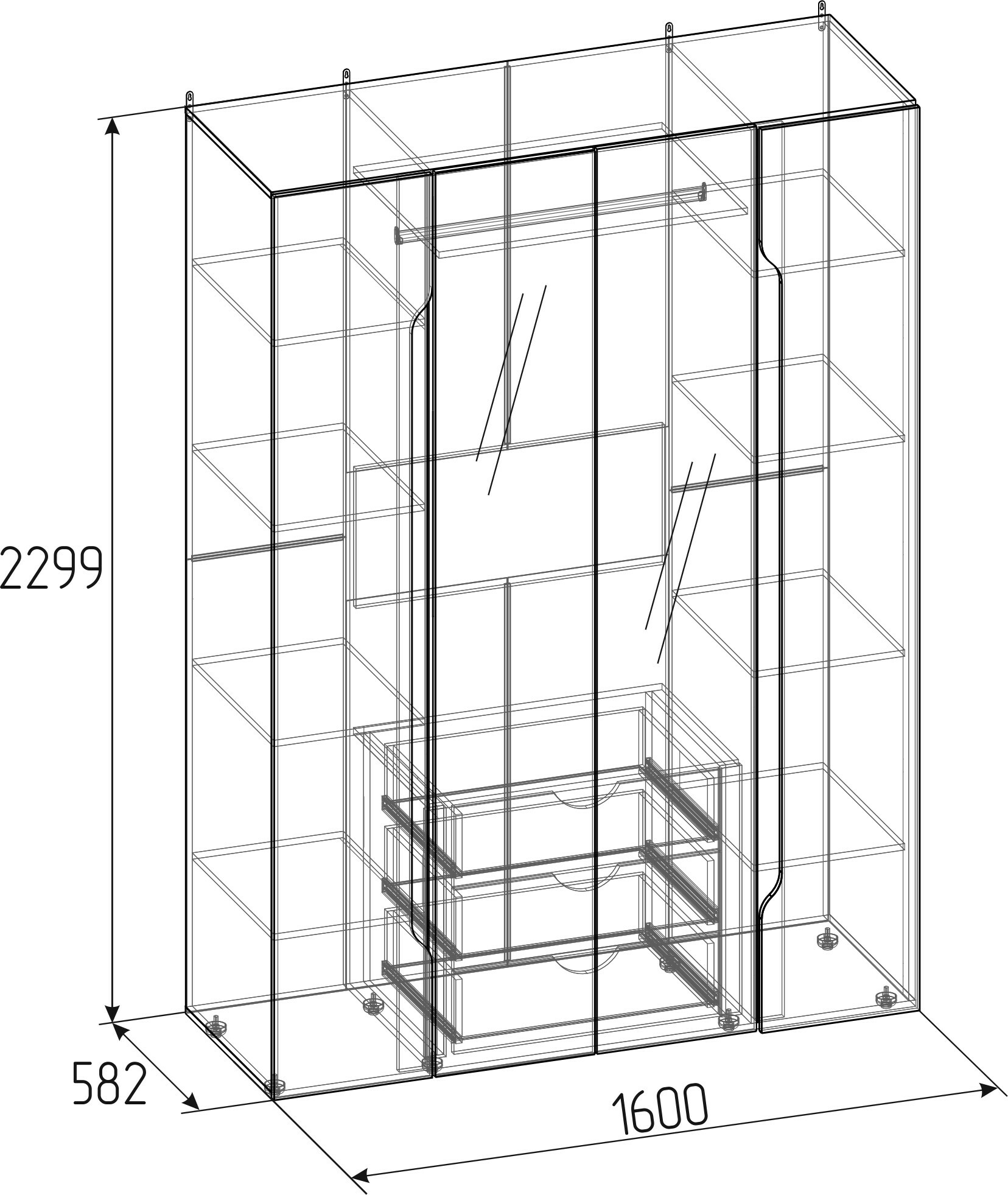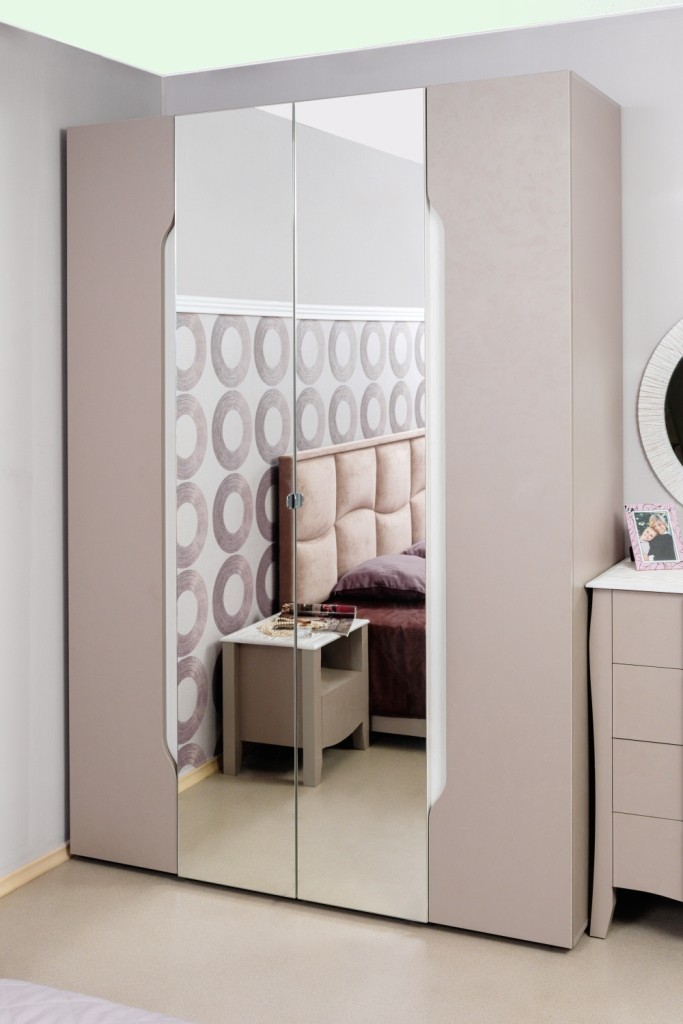 Новинка этой зимы - вместительный четырехдверный шкаф для одежды и белья Brownie 777. Это функциональный модуль, который благодаря своим размерам и разноплановому наполнению представляет собой полноценную систему хранения. Зеркала во весь рост на фасаде облегчают конструкцию шкафа и визуально освежают интерьер спальни. Внутреннее отделение для белья комплектуется полками, которые регулируются по высоте. Центральные зеркальные фасады скрывают за собой продольную штангу и вместительные выкатные ящики.