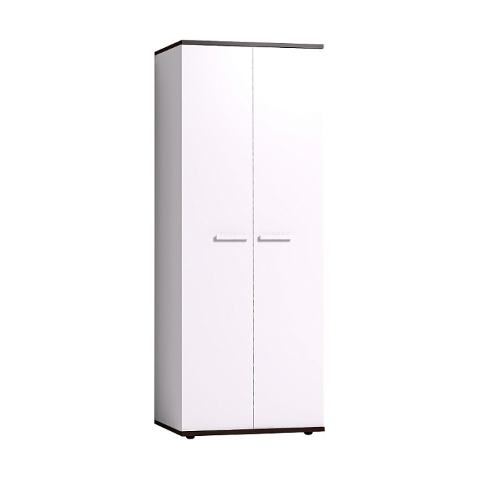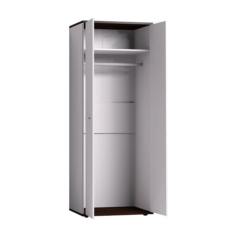 Двустворчатый Норвуд 12 Шкаф для одежды в белом декоре будет уместен как в гостиной, так и в спальне. Контрастный белому декор Орех шоколадный верхней и нижней деталей шкафа придает изюминку этому модулю. Внутреннее наполнение небольшого шкафа состоит из стационарной штанги длиной 757 мм и верхней полки. Распашные фасады шкафа открываются за светлые ручки из массива дерева. Благодаря услу
