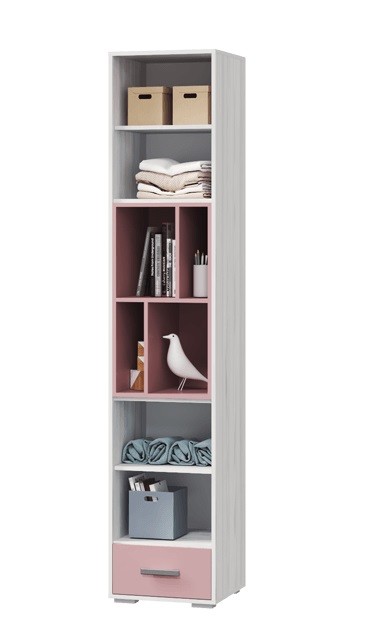 Ни одна детская не обходится без шкафа для дниг и игрушек. Шкаф для книг Лило с 2-мя дверцами, ящиком и открытыми полками - отличный вариант! Модуль имеет небольшую ширину, всего 45 см, но при этом достаточно вместителен. Вашему ребенку хватит места для хранения книг, канцелярии, игрушек, любимых вещиц и статуэток. Расположив модуль рядом с письменным столом, Вы навсегда решите вопрос порядка на рабочем месте ребенка.