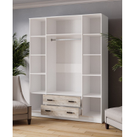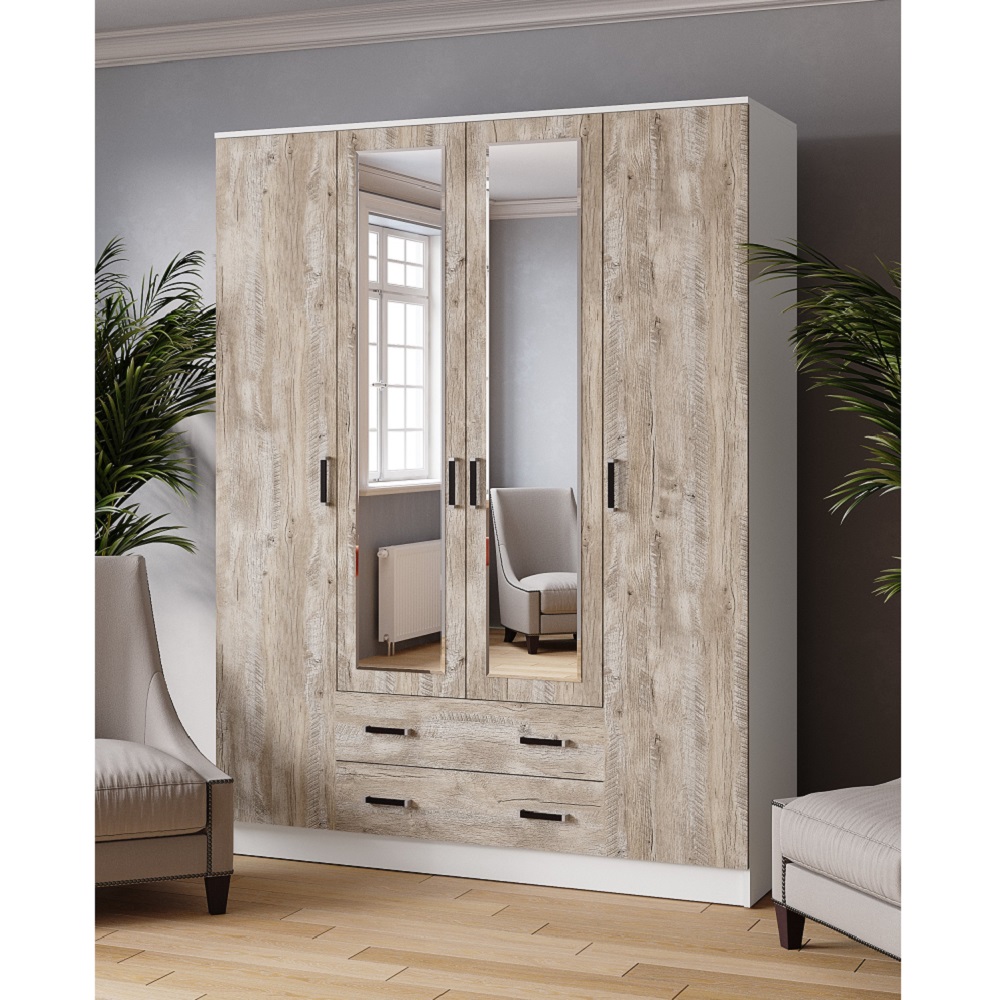 Шкаф комбинированный Лагуна шириной 160 см оснащен двумя зеркалами, полками, платяным отделом и выдвижными ящиками. Организуйте место хранения одежды, белья, аксессуаров в одном месте. Благодаря гармоничным пропорциям и универсальному дизайну шкаф будет гармонично смотреться с современной обстановке.
