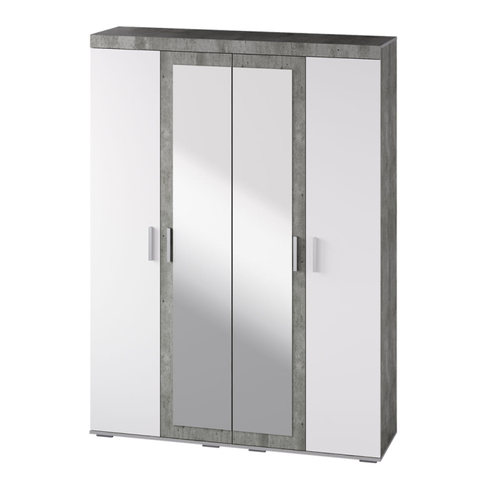 Шкаф для белья Инстайл ШК-31 в цвете бетон/белый — это стильный и функциональный элемент интерьера, который добавит комфорт и порядок в вашу спальню. Он имеет четыре дверцы, две из которых зеркальные, и два отделения со штангами для вешалок. Внутри также предусмотрены верхние и нижние полки для хранения различных предметов гардероба. Современный дизайн шкафа гармонично впишется в интерьер комнаты и создаст атмосферу уюта и стиля.