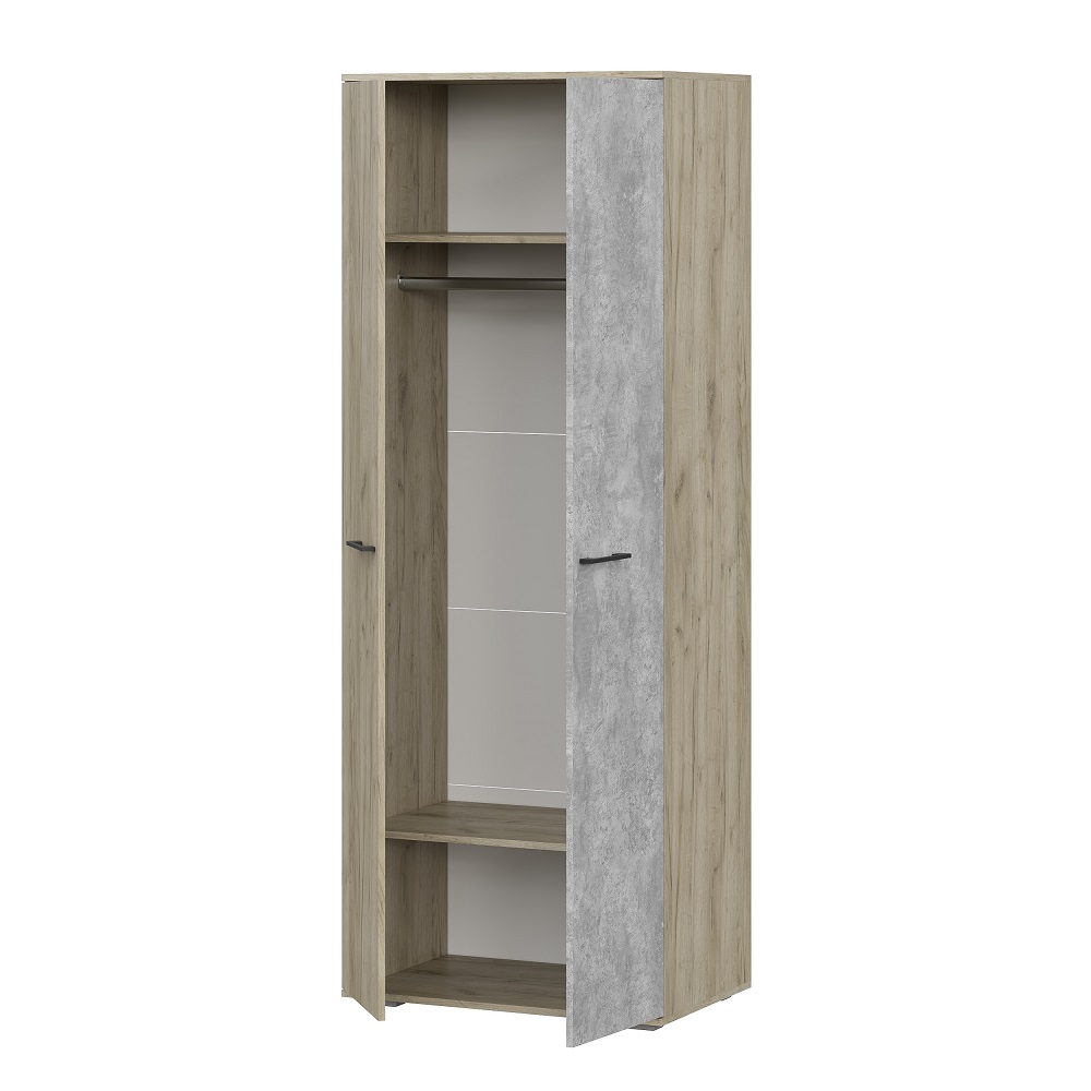 Вместительный двустворчатый шкаф с широкой стационарной штангой и двумя полками. Может быть установлен, как самостоятельный предмет мебели, или как элемент шкафной группы в прихожей или спальне.