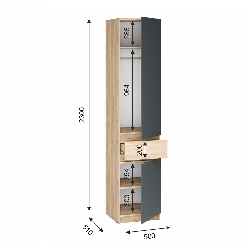 Шкаф Стоуби ШК-500 дуб крафт/графит Код I0000430971