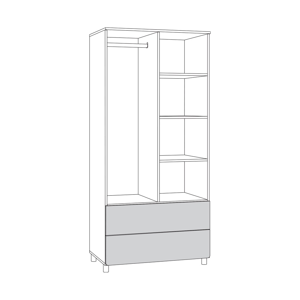 Функциональность: два выдвижных ящика на шариковых направляющих и отделение со штангой для одежды.
