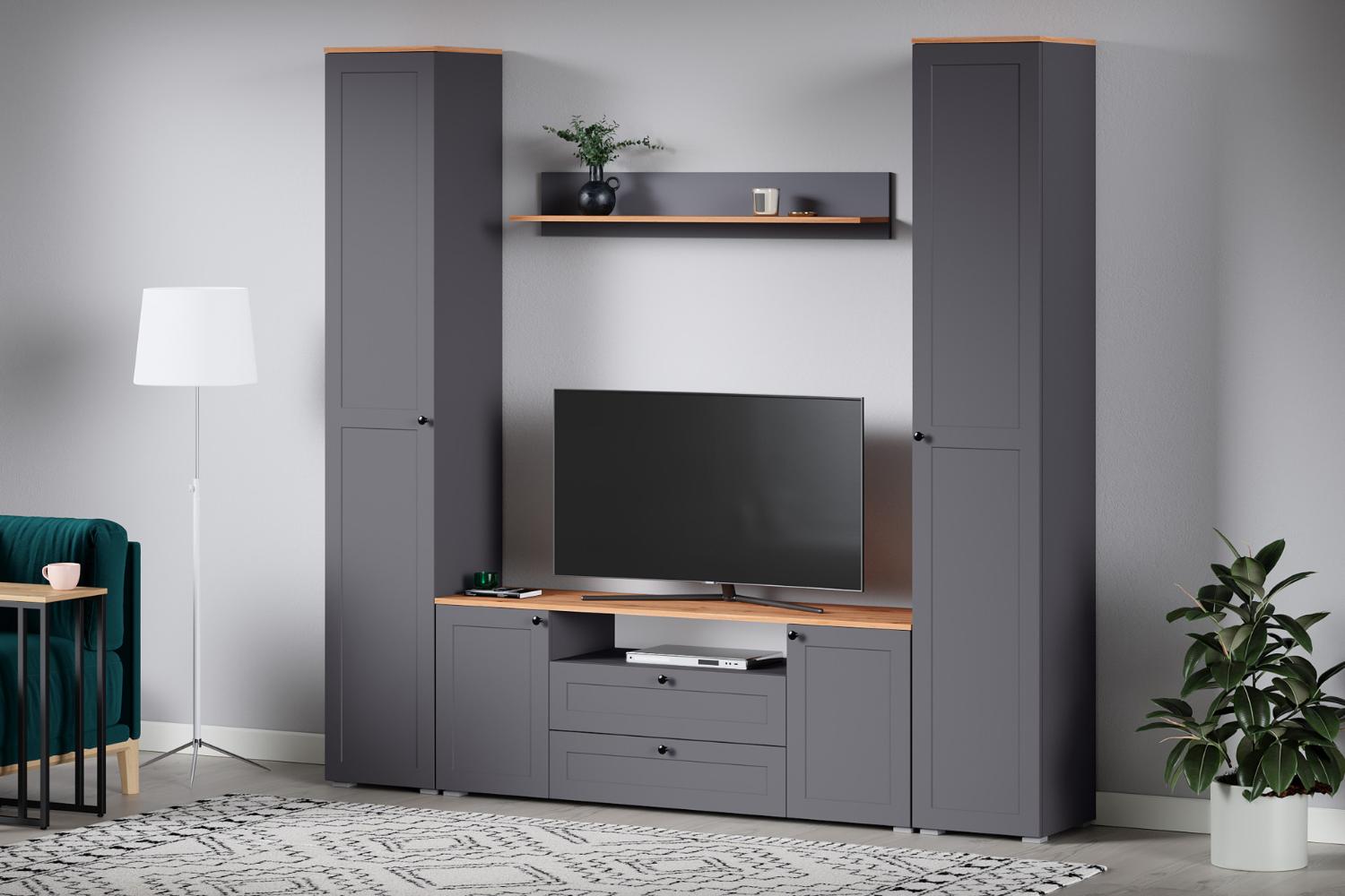 Остин — это современная классическая гостиная, отличающаяся лаконичностью, строгими линиями и контрастной фурнитурой. Она сочетает в себе функциональность и элегантность. Коллекция доступна в двух цветах: белом и графитовом с тёплым древесным декором.