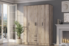 Четырехстворчатый шкаф "Титан" - это элегантное и функциональное решение в трендовом древесном декоре с текстурой дуба.