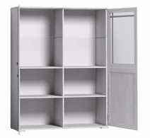 Разнообразить мебельный комплект в гостиной поможет неглубокий шкаф-сервант со стеклянными фасадами из коллекции Sherlock. Он отлично впишется в классический интерьер и визуально облегчит его за счет стеклянных элементов и рамочного рисунка. В верхней части модуля расположена стеклянная полочка, предназначенная для хранения сервиза и дорогой посуды. Внизу Вы можете хранить вещи, которые лучше спрятать от лишних глаз: бытовую утварь, коробки и многое другое.