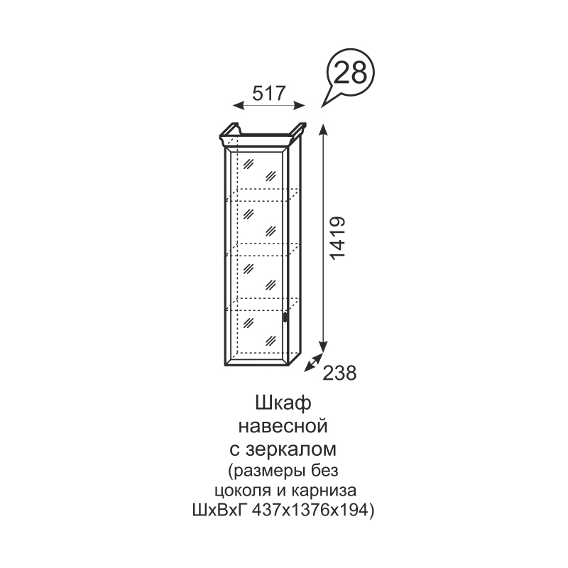 Шкаф навесной с зеркалом Венеция 28 Код I0000430765