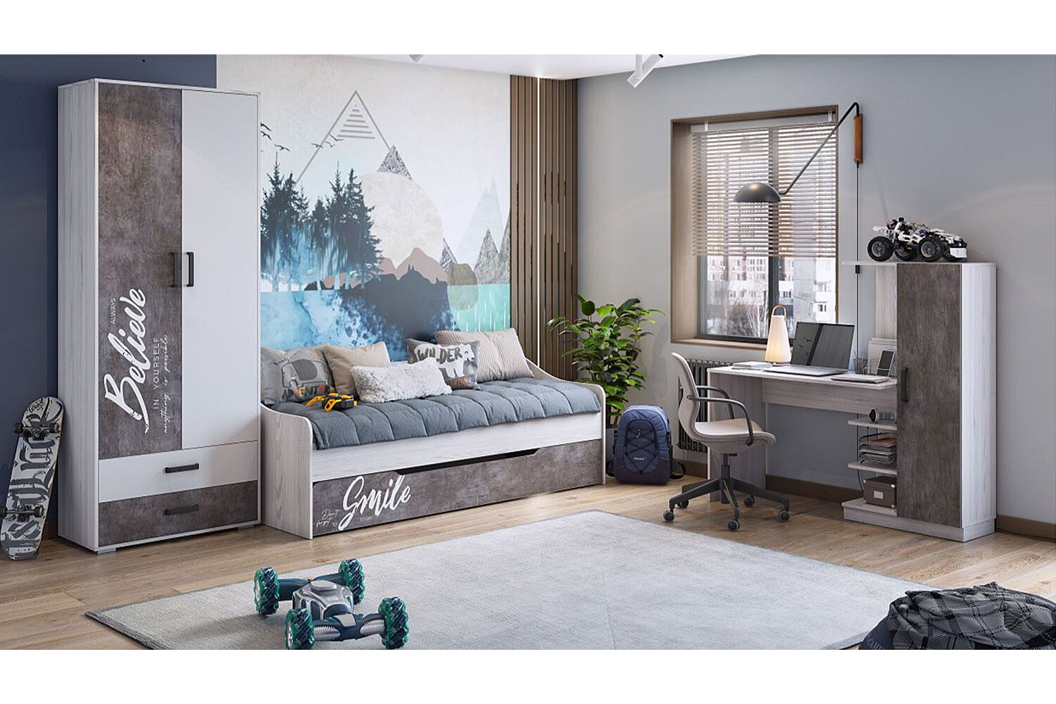 Широкий шкаф для одежды и белья Оливер дополнит комнату вашего ребенка и поможет удобно организовать хранение вещей. За распашными дверцами вы найдете отсек с несколькими полками, антресоль и две штанги для одежды, а также шкаф оснащен двумя вместительными выкатными ящиками.