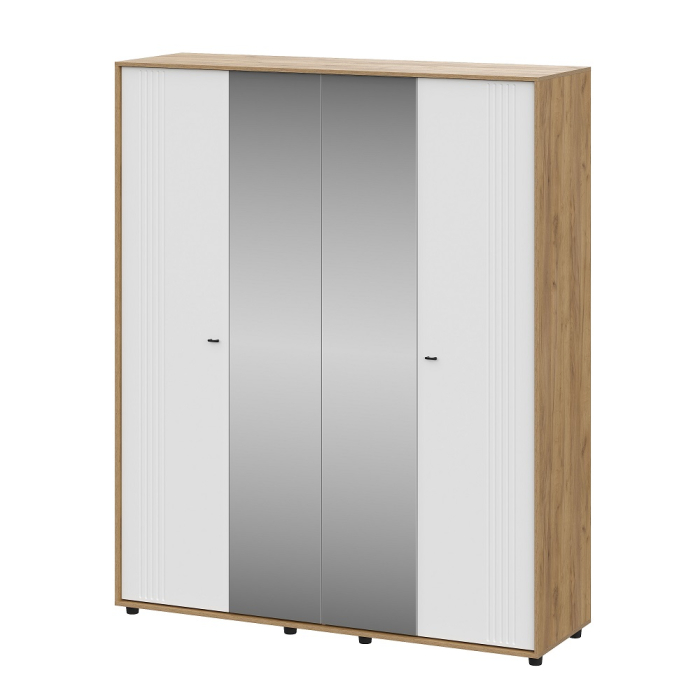 Выбирая вместительный шкаф в спальню или просторную прихожую, обратите внимание на четырехстворчатый шкаф с зеркалами из серии Милан. Две зеркальные створки, полки для белья, штанга для одежды - все Ваши вещи будут храниться в одном месте в порядке. Цветовая гамма шкафа визуально увеличит пространство и позволит вписать модуль в любой современный интерьер.