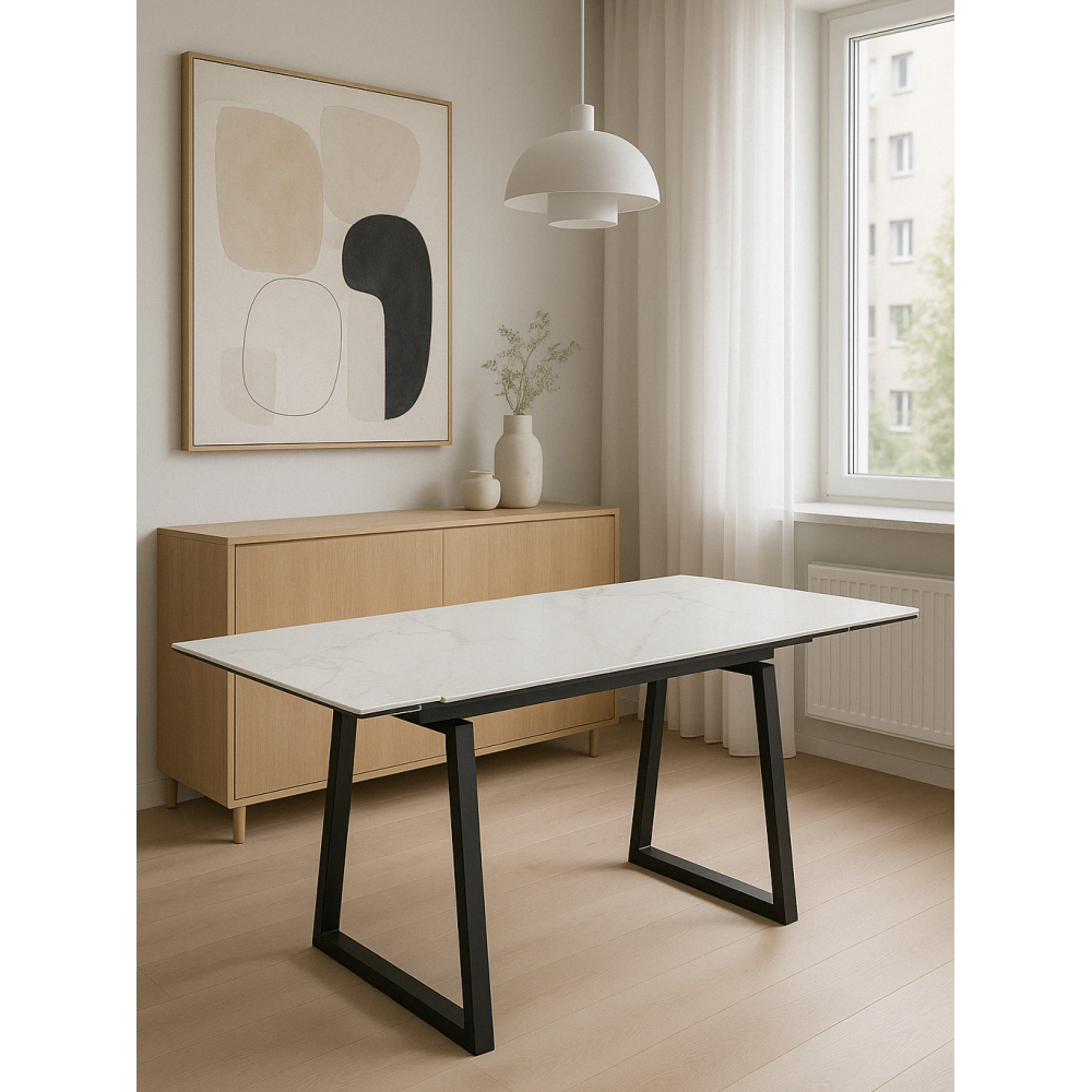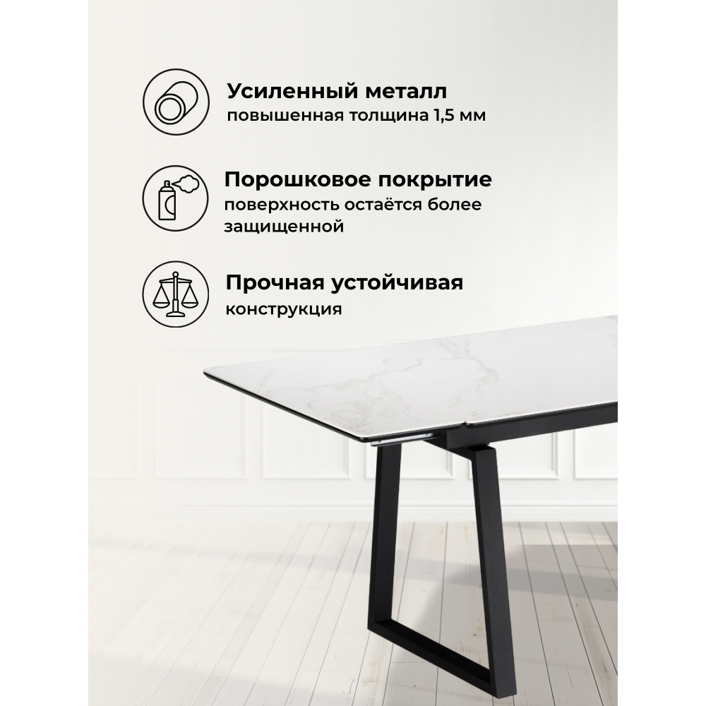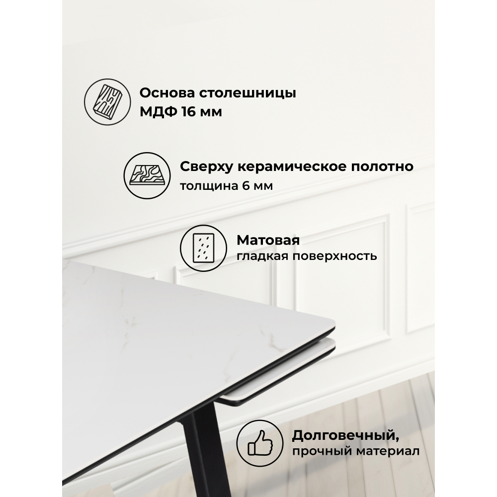 Столешница выполнена из керамики, что обеспечивает не только эстетическую привлекательность, но и высокую прочность, устойчивость к повреждениям и легкость в уходе.