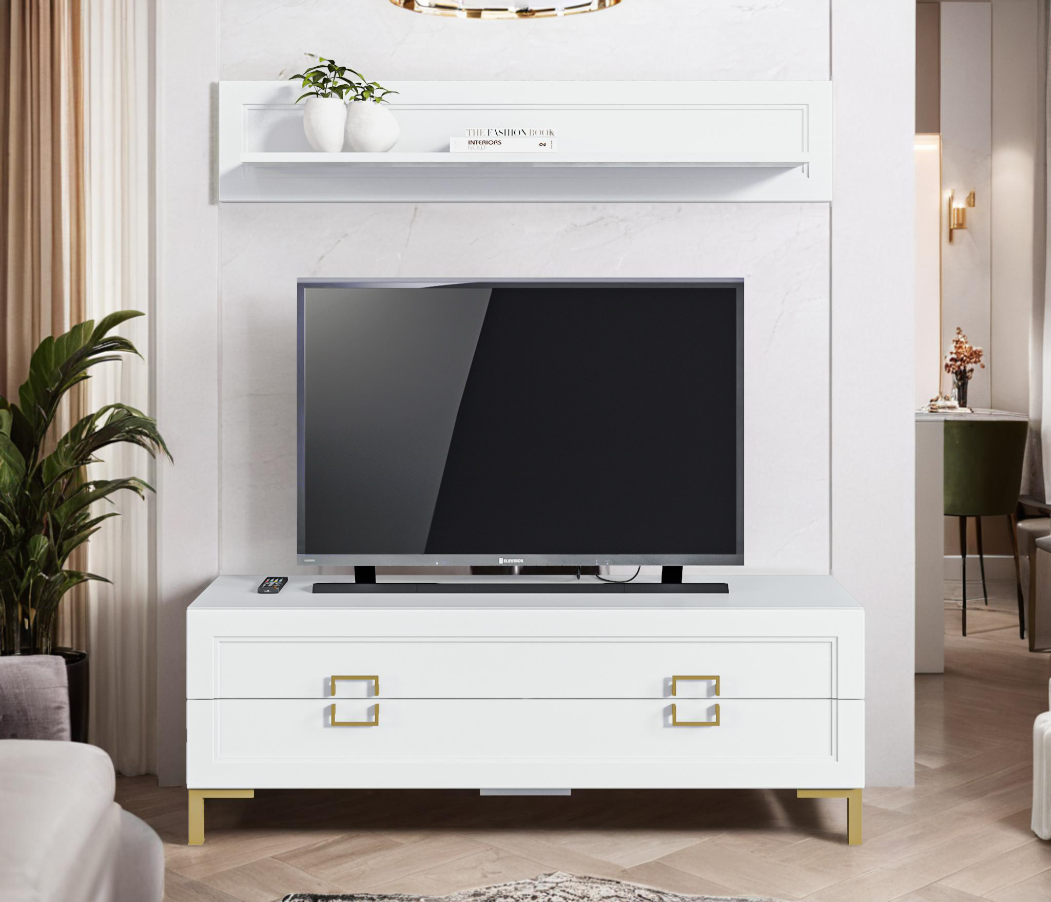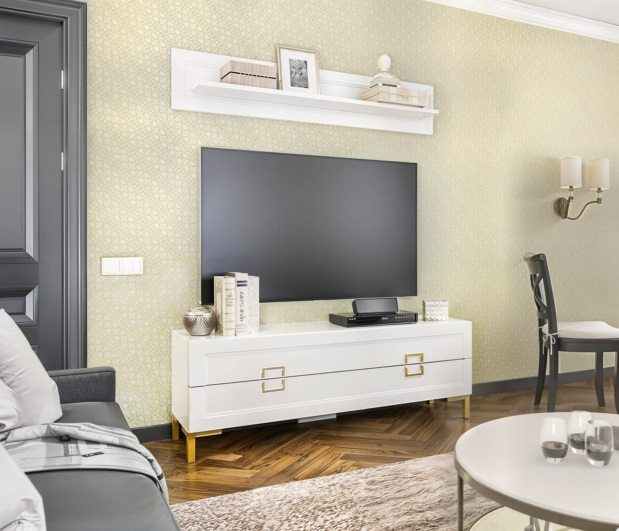 Комплект для гостиной, тумба ТВ и полка, Белый (Белый) Код 00000336483