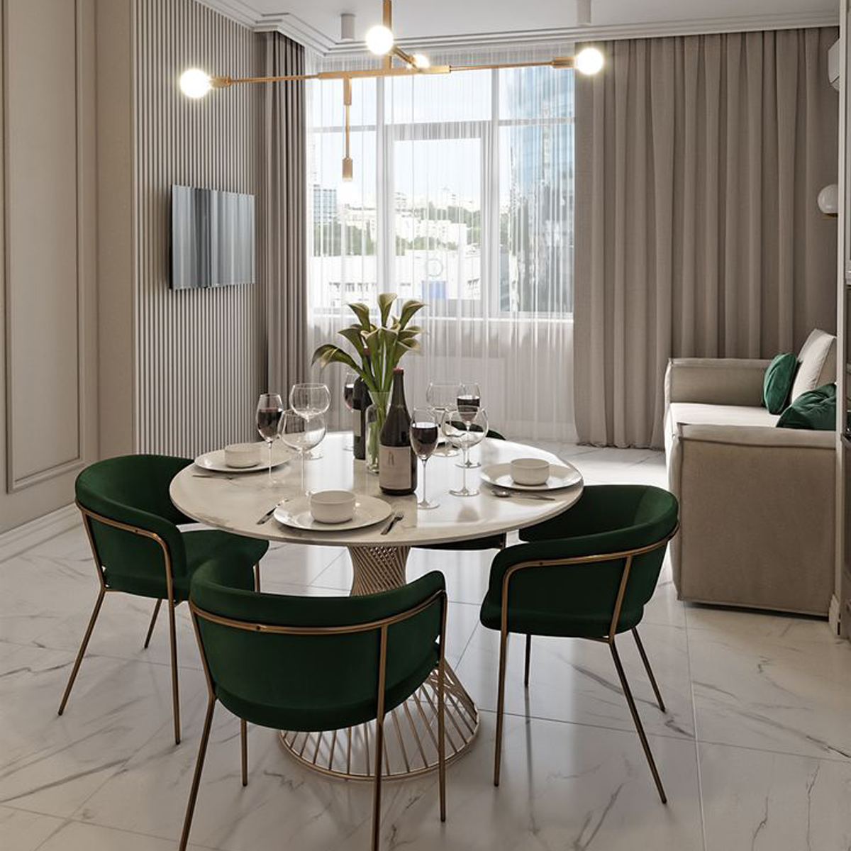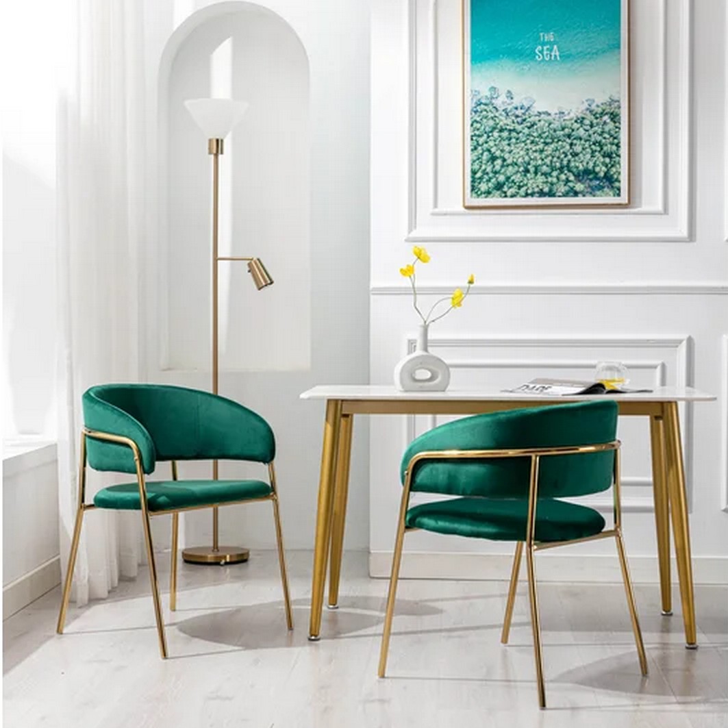 Кресло выполнено с золотистыми акцентами, что придает ему изысканный и современный вид. Обивка из велюра, обеспечивает мягкость и комфорт при использовании.