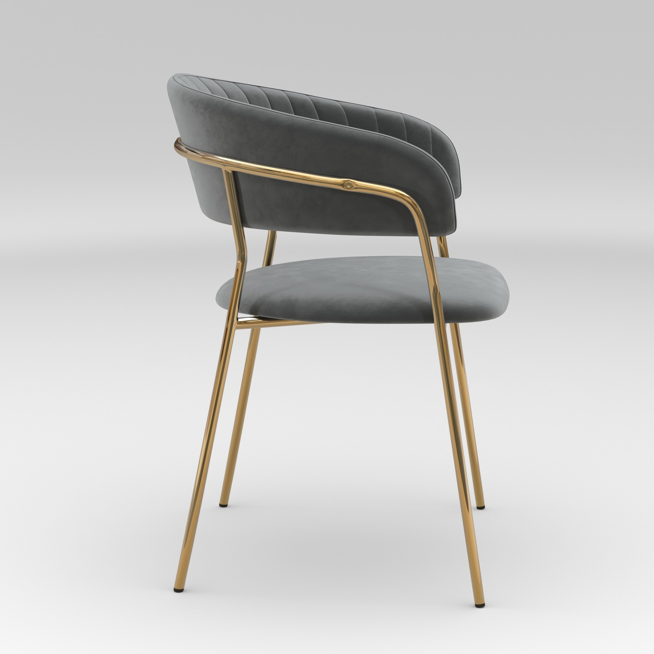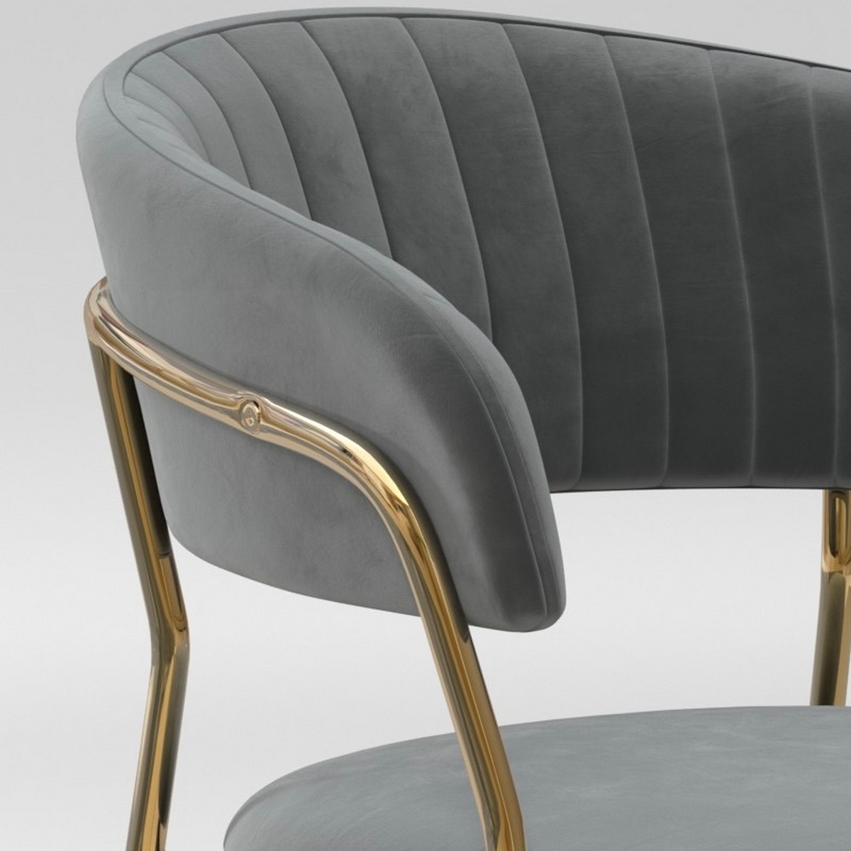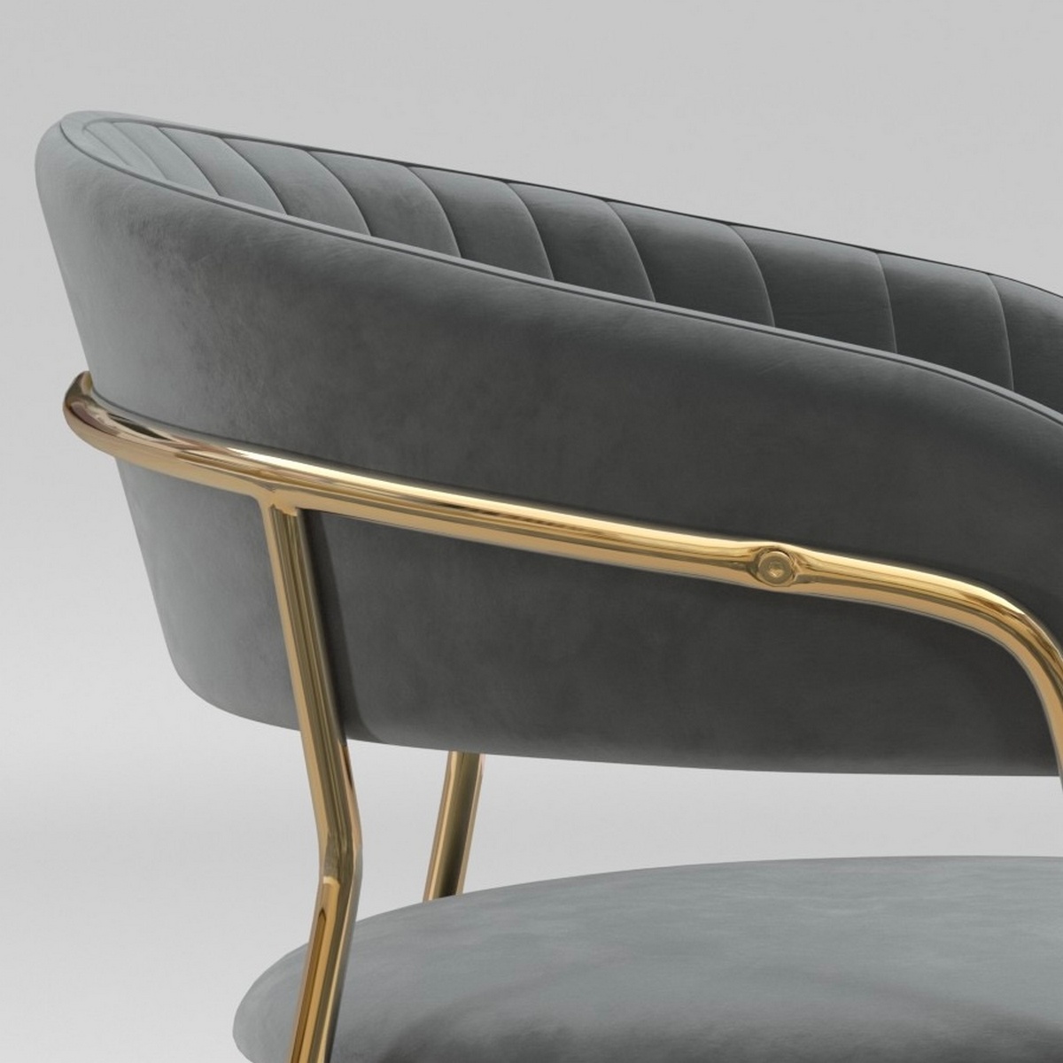 Кресло выполнено с золотистыми акцентами, что придает ему изысканный и современный вид. Обивка из велюра, обеспечивает мягкость и комфорт при использовании.