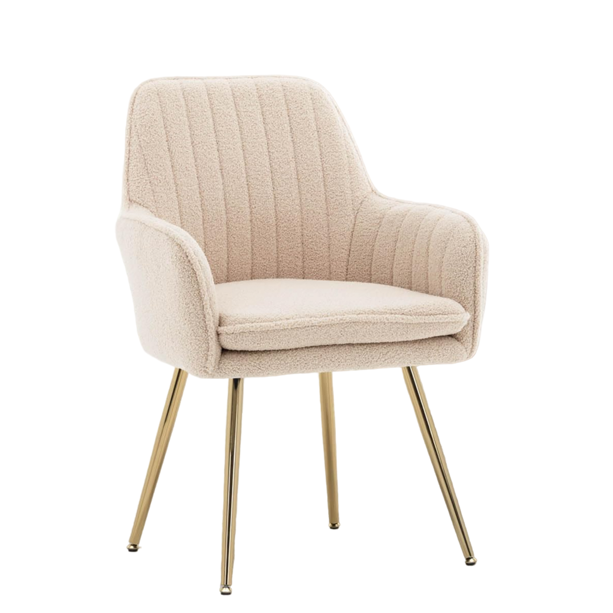 Бренд HESBY представляет вашему вниманию стильный и комфортный мягкий стул-кресло Tranquil Synchrony с подлокотниками, который станет изюминкой вашего интерьера. Обивка из мягкого букле нежного бежевого цвета придаст уют и элегантность вашему пространству, а золотые металлические ножки добавят нотку роскоши и современности.Кресло выполнено с акцентом на максимальный комфорт: мягкое сиденье и удобные подлокотники создают идеальные условия для отдыха и расслабления. Регулируемые подпятники на ножках обеспечивают устойчивость и позволяют использовать кресло на различных поверхностях, не беспокоясь о неровностях пола.Размеры стула-кресла: высота — 88 см, ширина — 59 см, глубина — 50 см, высота сиденья — 49 см. Максимальная нагрузка составляет 150 кг, что подтверждает надежность и прочность конструкции.Этот стул-кресло идеально подходит как для домашнего интерьера, так и для офисных пространств, комбинируя в себе стиль и функциональность. Сделайте ваше пространство более комфортным и красивым с этим уникальным изделием!
